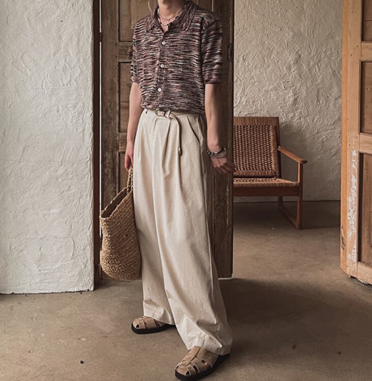 #ワイドパンツ #リネンパンツ #夏コーデ #メンズファッション #韓国ファッション #リゾートコーデ #カジュアルスタイル #涼しいパンツ #MRCYC #大人カジュアル