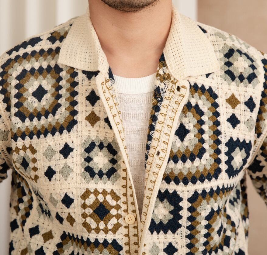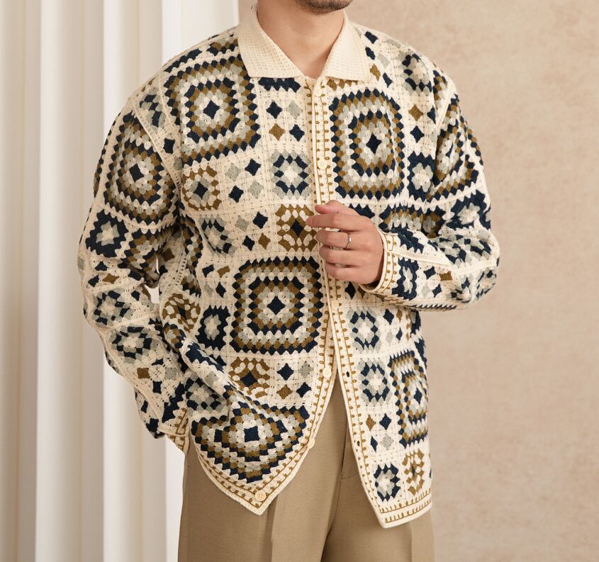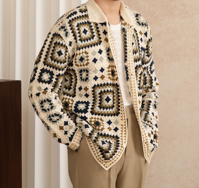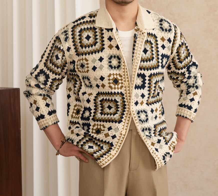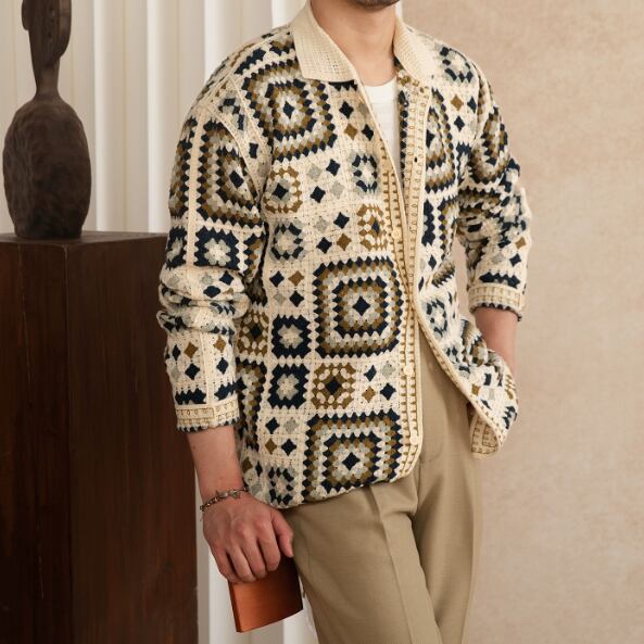 ラグジュアリー ジオメトリックパターン ニットカーディガン