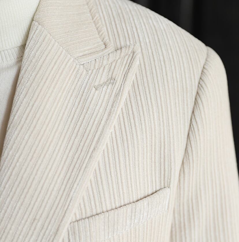 デザイン特徴:ピークドラペル(9-11cm) / 長袖 / 背面サイドベンツ / 内ポケット付き