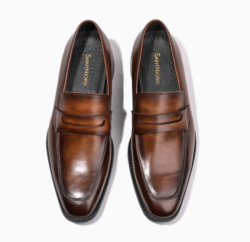 高級本革ローファー メンズ ビジネスシューズ 秋冬 手作り 通気性良 革靴 ブラウン&ブラック