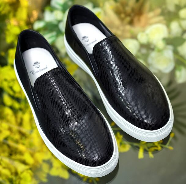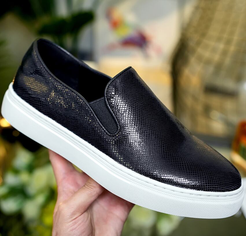 高級光沢レザー スリッポンスニーカー メンズ 本革カジュアルシューズ