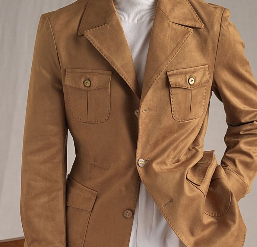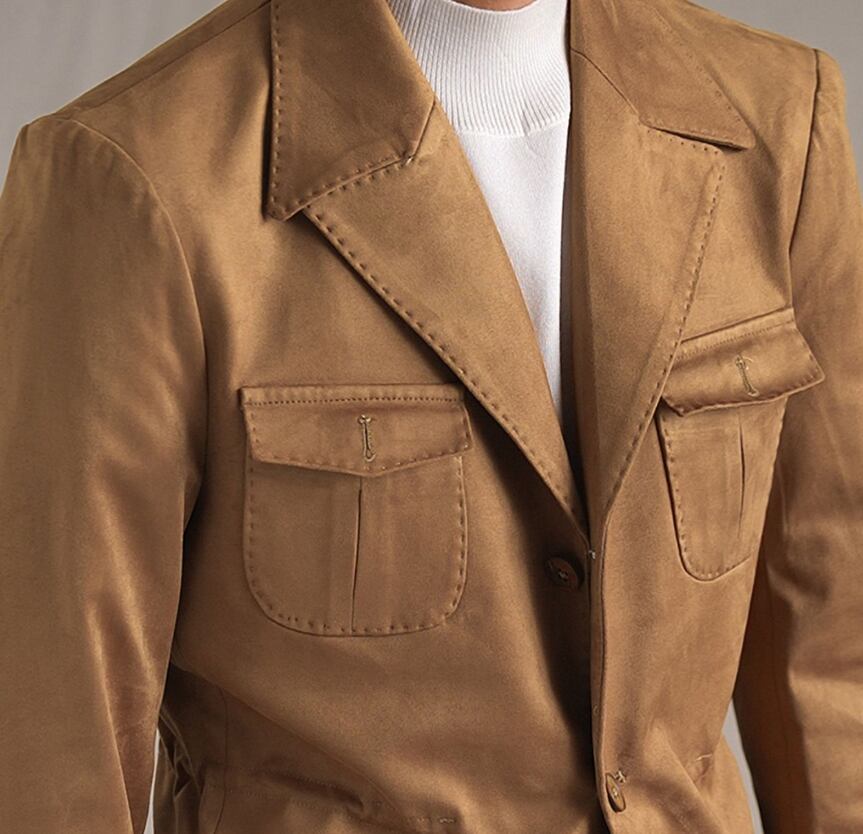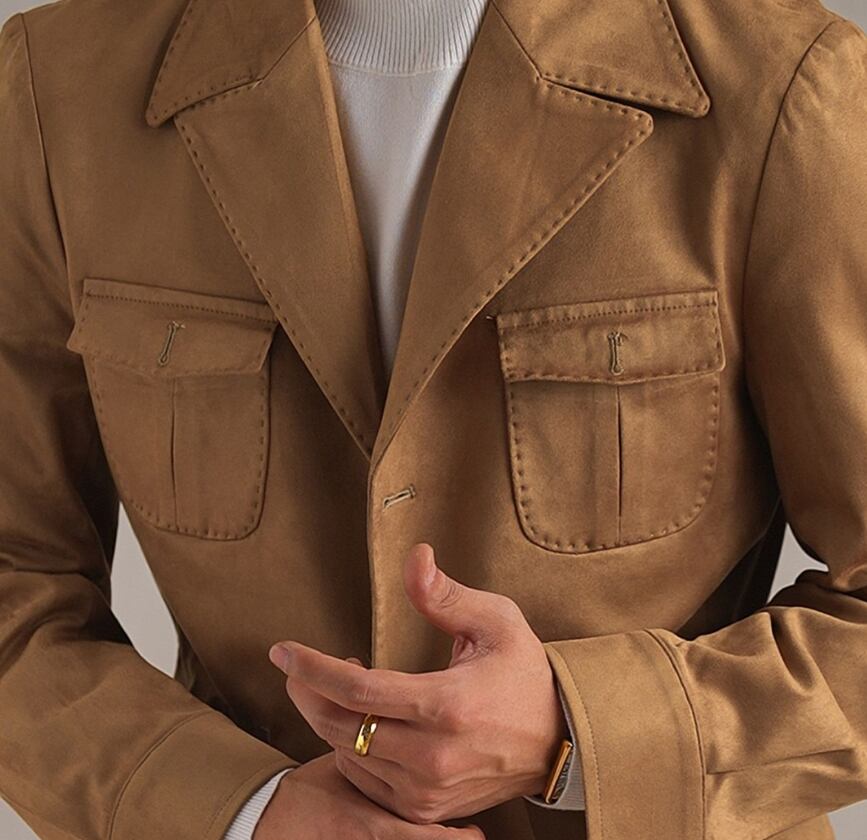イタリアンスタイル スエード調サファリジャケット|秋冬メンズジャケット アウター ミリタリーテイスト 通勤・カジュアル兼用