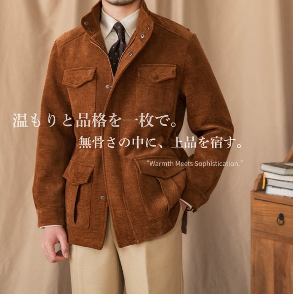 秋冬に映えるコーデュロイ素材で仕立てた一着。