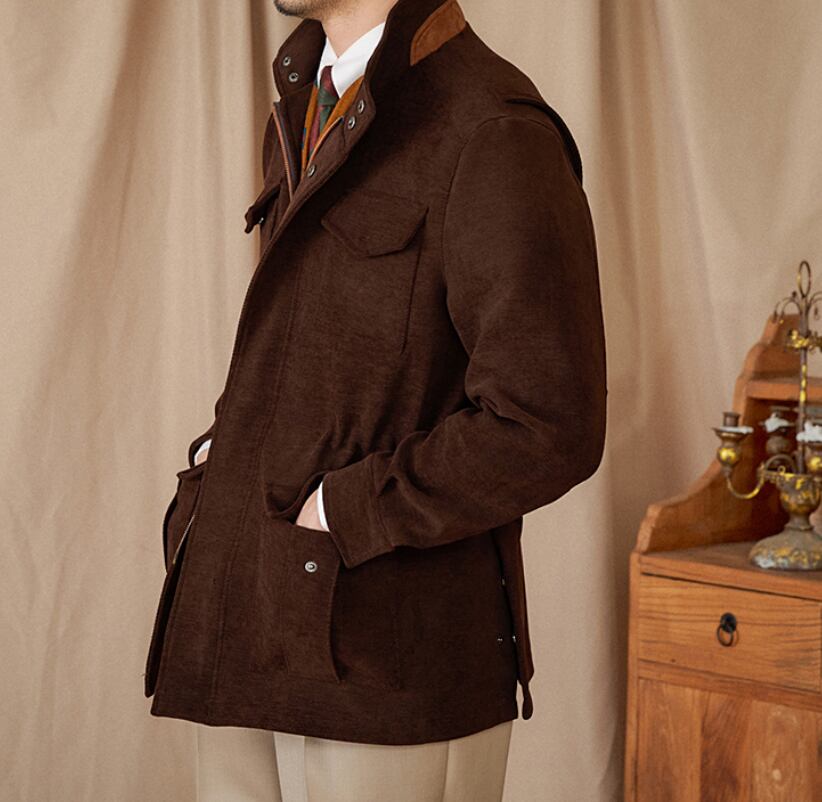 英国M65風 コーデュロイジャケット|秋冬 メンズ ミリタリー アウター ブラウン 無地 保温 防風 カジュアルスタイル