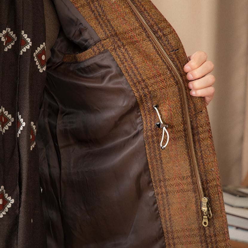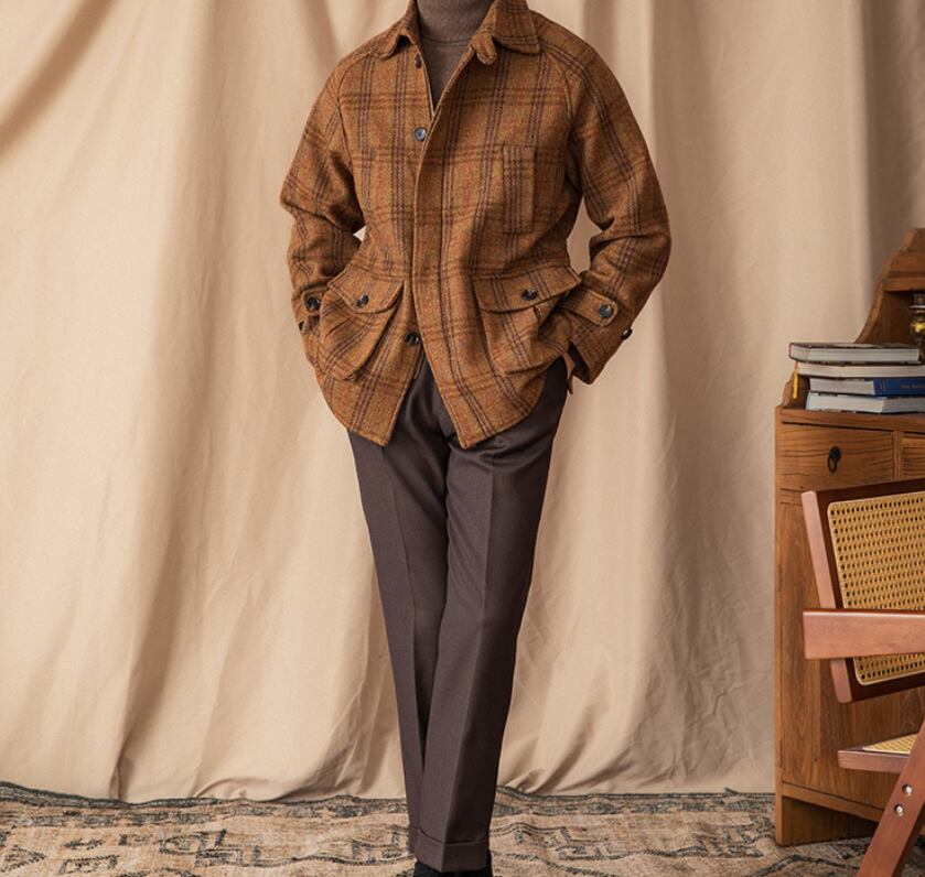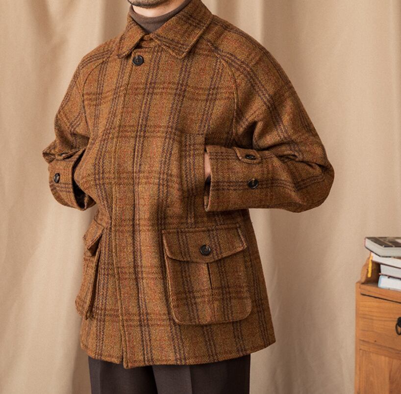 英国調100%ウールヘリンボーンチェックジャケット|秋冬 メンズ ハンティングジャケット風 クラシック アウター 防寒 保温 高級感