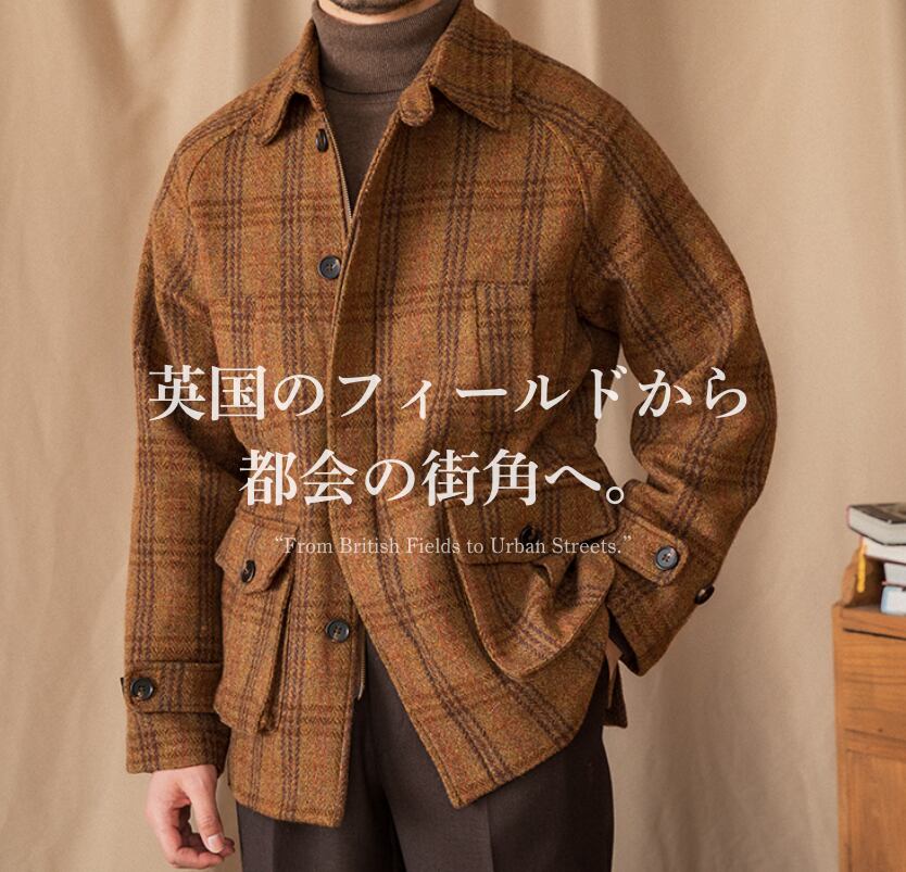 英国クラシックを思わせる、100%ウール素材の本格ツイードジャケット。