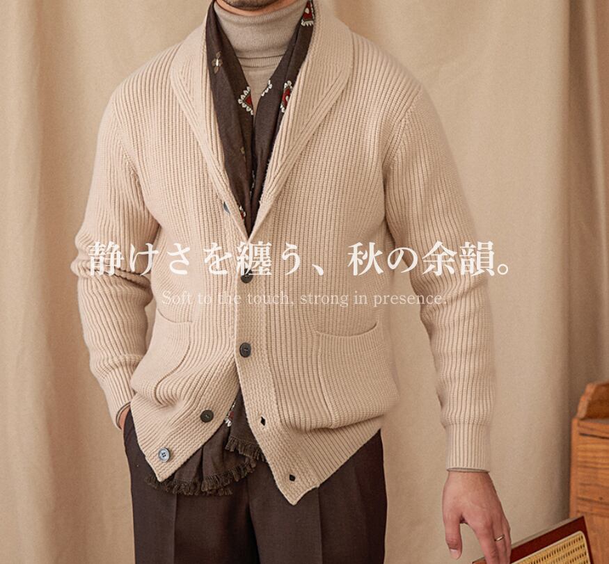 しっとりとした秋の空気に馴染む、上品なショールカラーカーディガン。