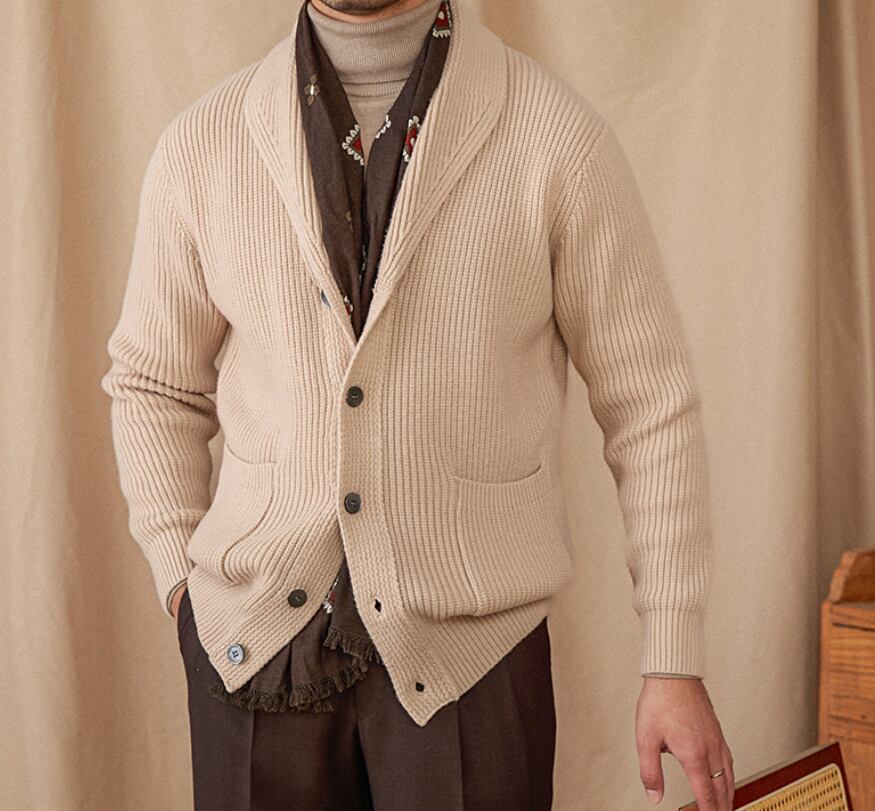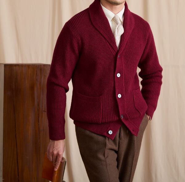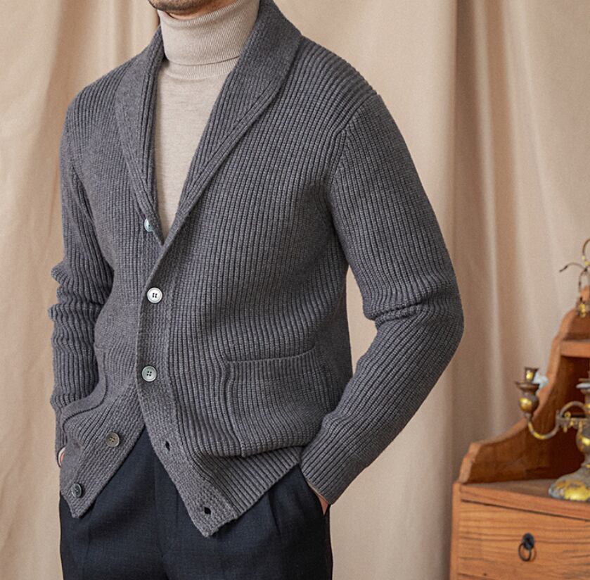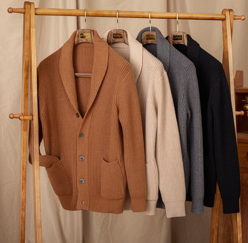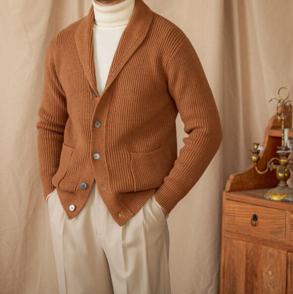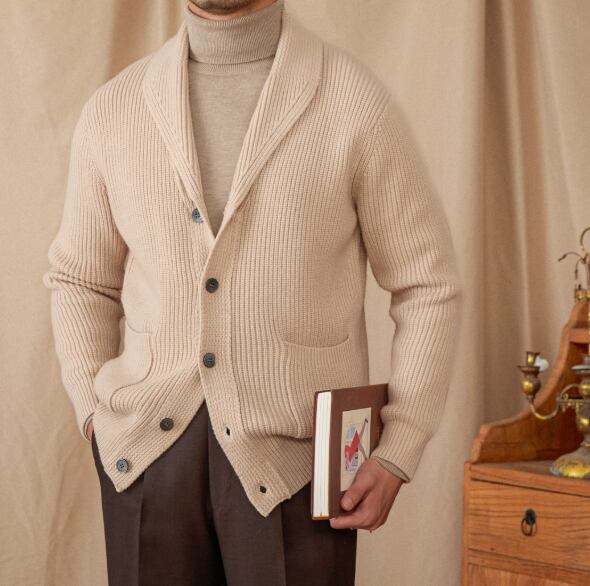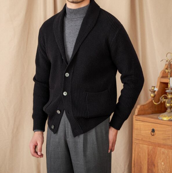 イタリアンショールカラーニットカーディガン|秋冬新作 メンズ ニットアウター 長袖 リブ編み ゆったり ショールカラー 上質カジュアル