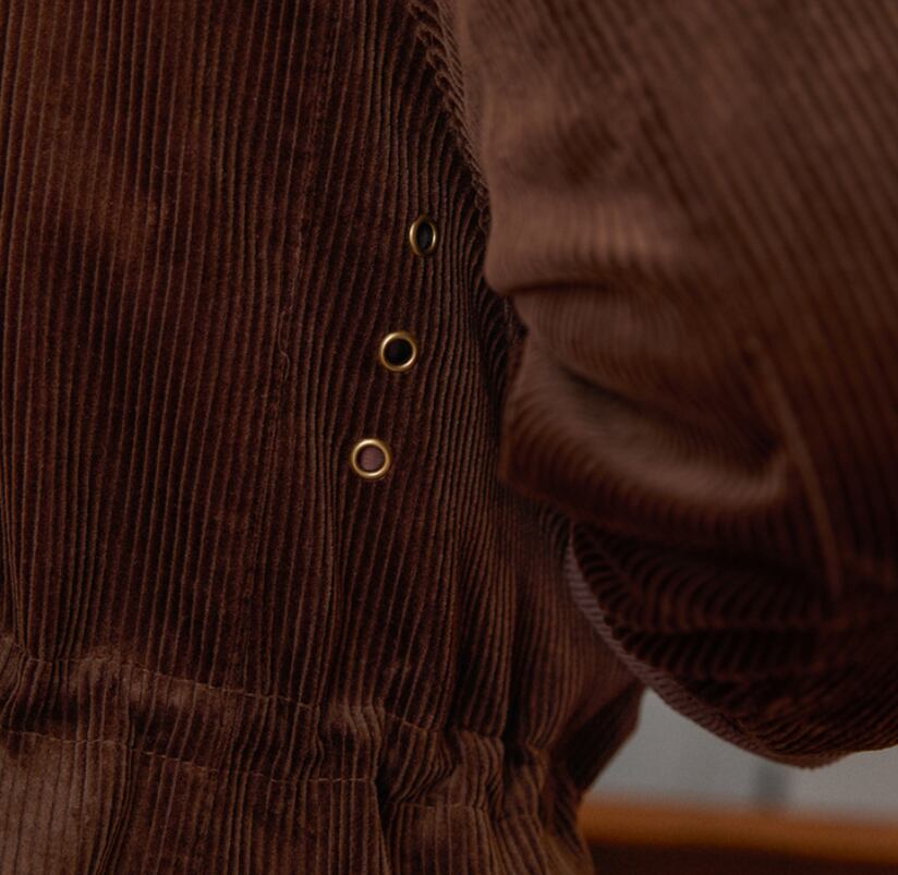 深みのあるブラウンコーデュロイに、