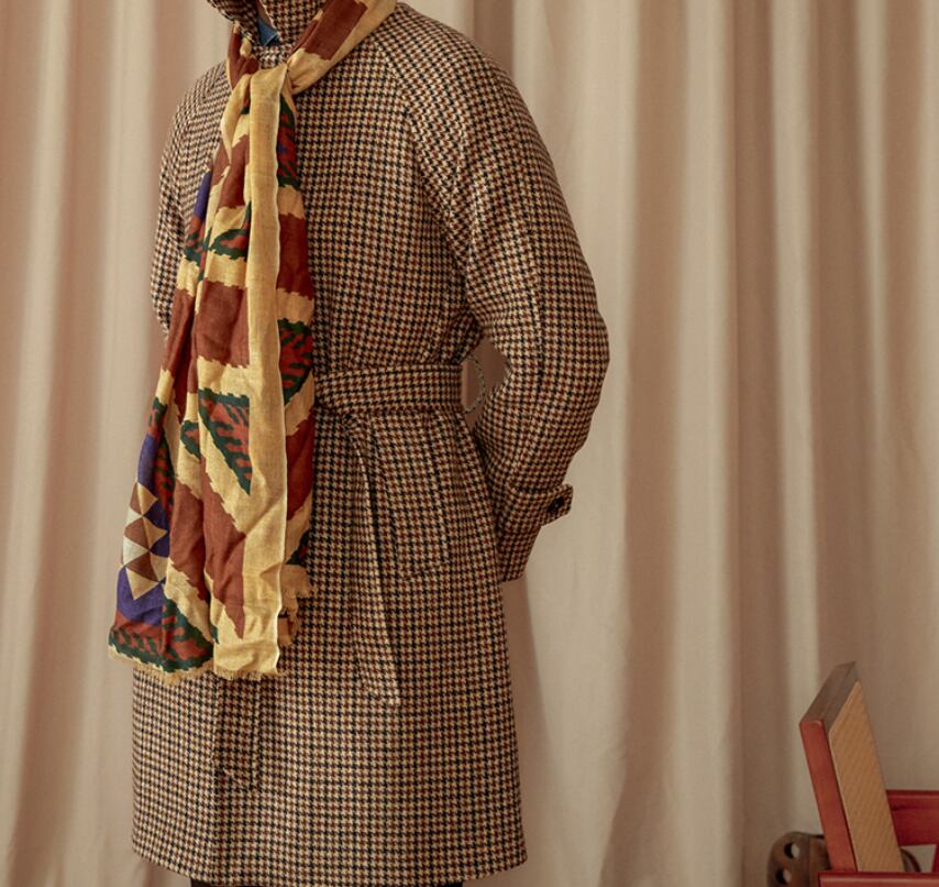 深みのあるブラウンベースの千鳥格柄は、