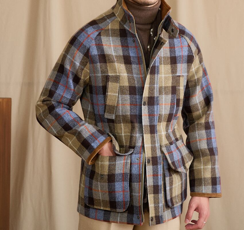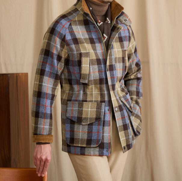 【100%ウール/英国調】ヘビーウール ハンティングジャケット 秋冬アウター メンズ チェック柄 バルカラー