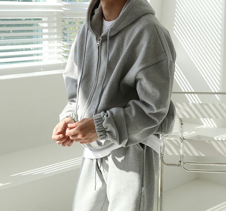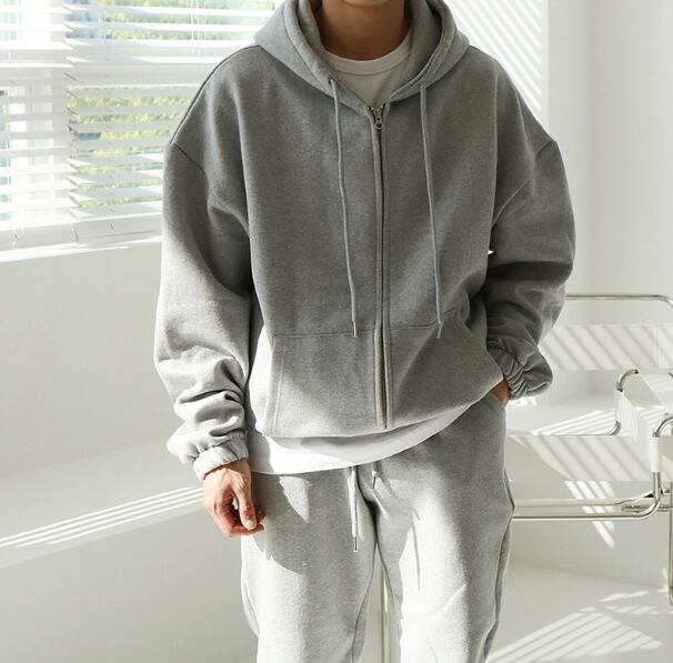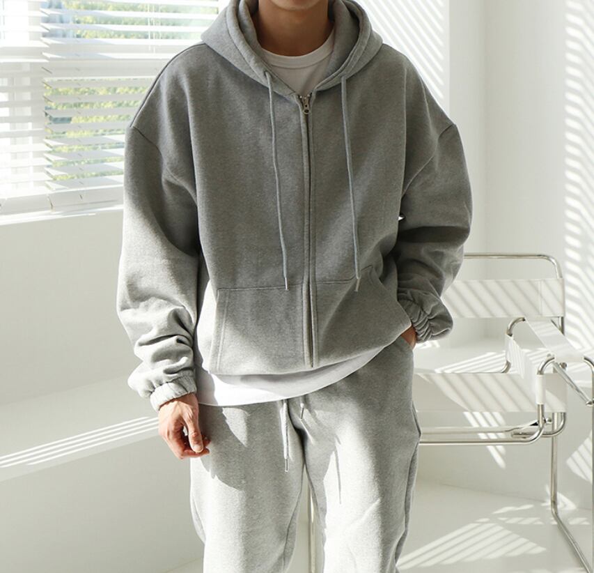 《上質ヘビーウェイト》韓国風ミニマルジップアップフーディー|裏起毛・秋冬メンズ・ワイドシルエット・大人ストリートの決定版