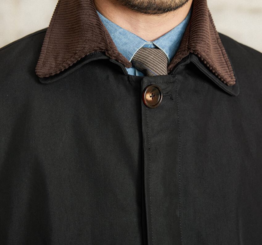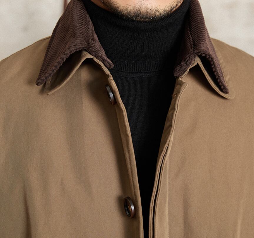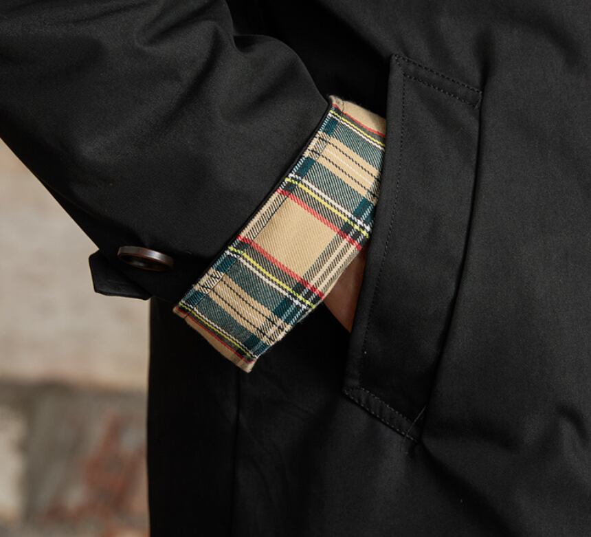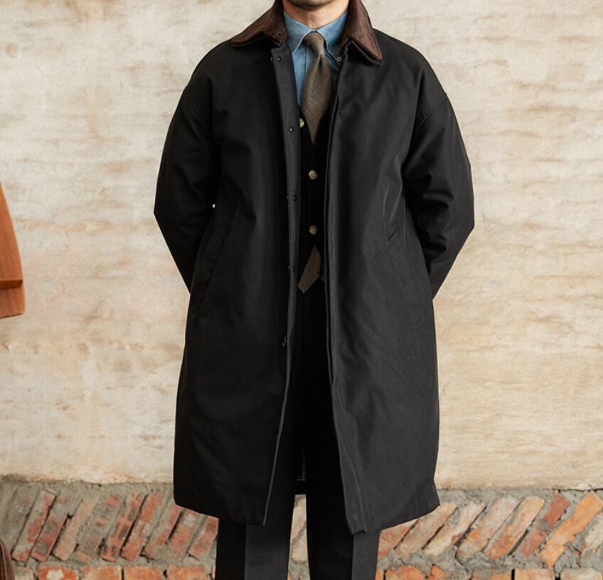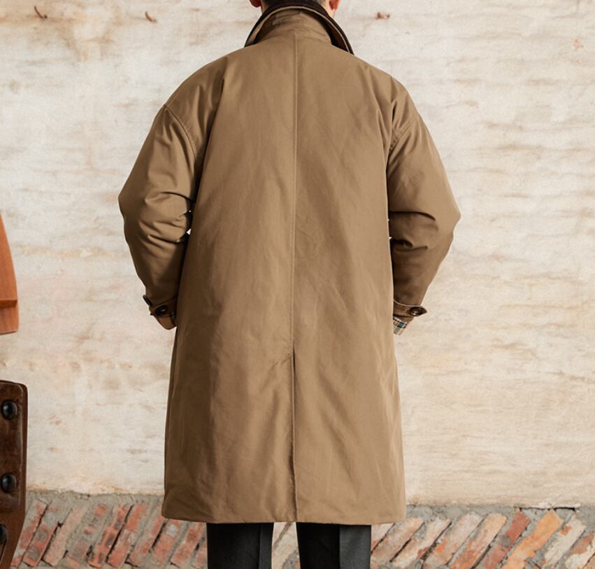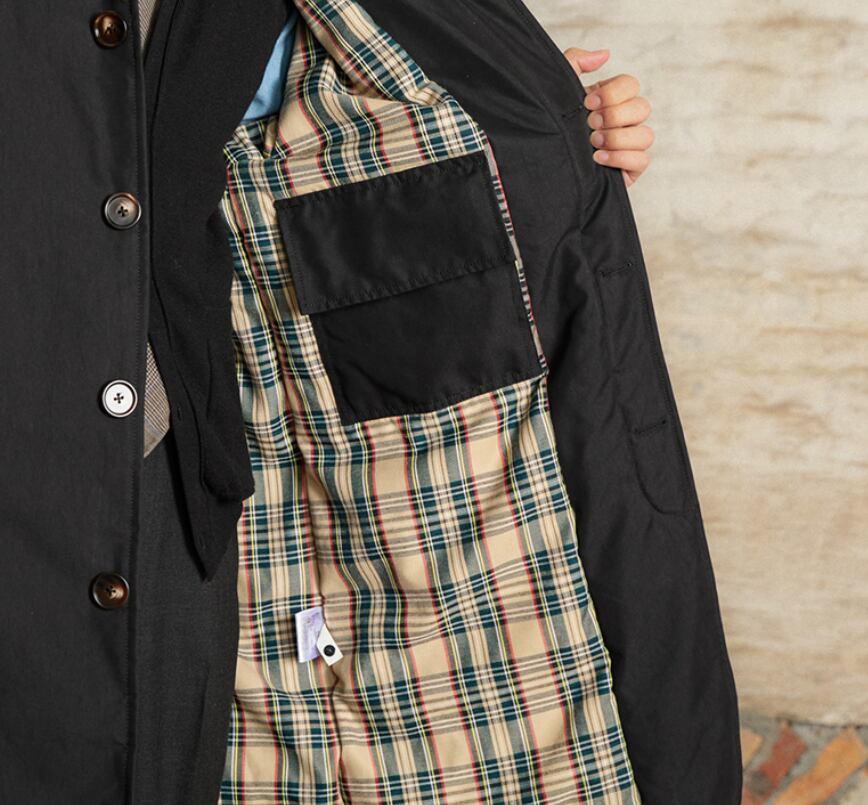 【DEZAIN】英国バルマカーンコート 高密度コットン ロング丈 裏地チェック メンズステンカラーコート(秋冬アウター)