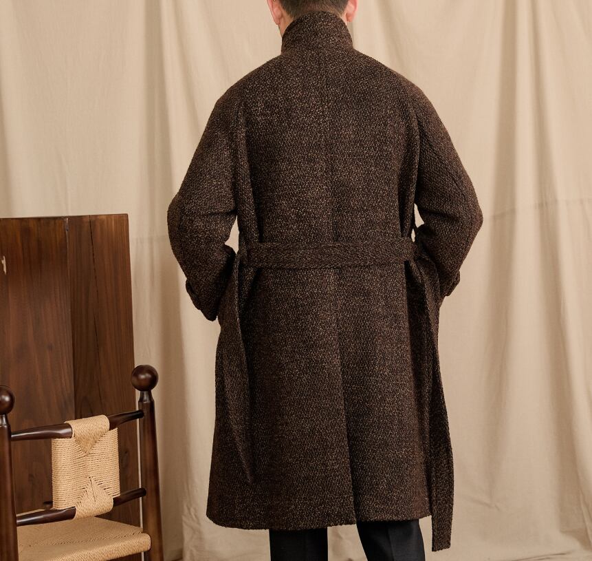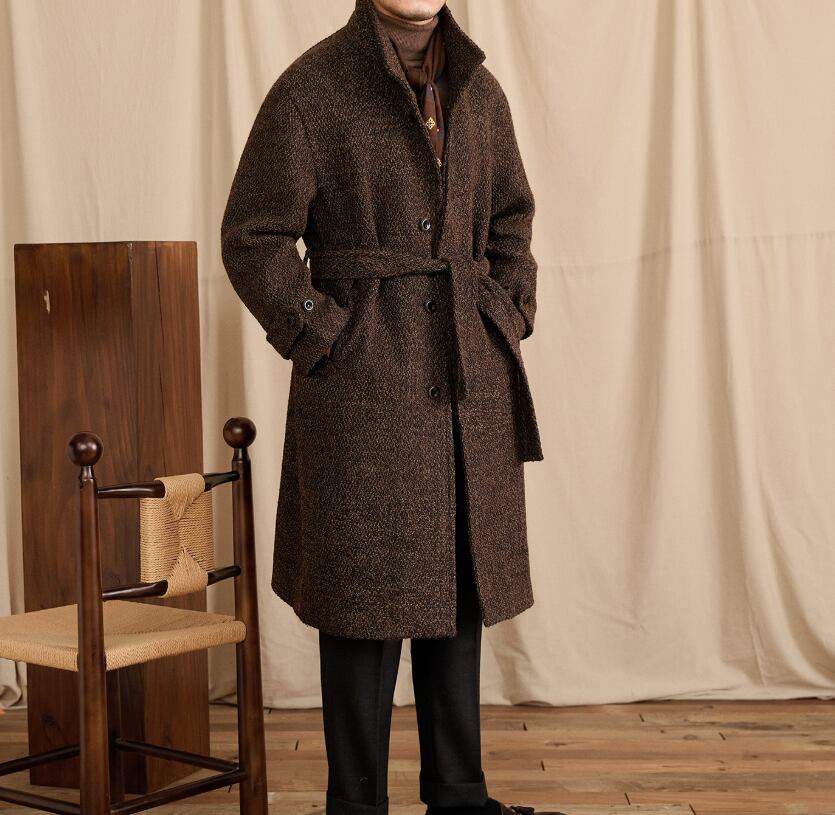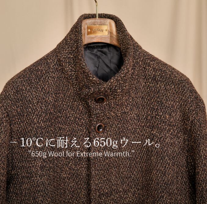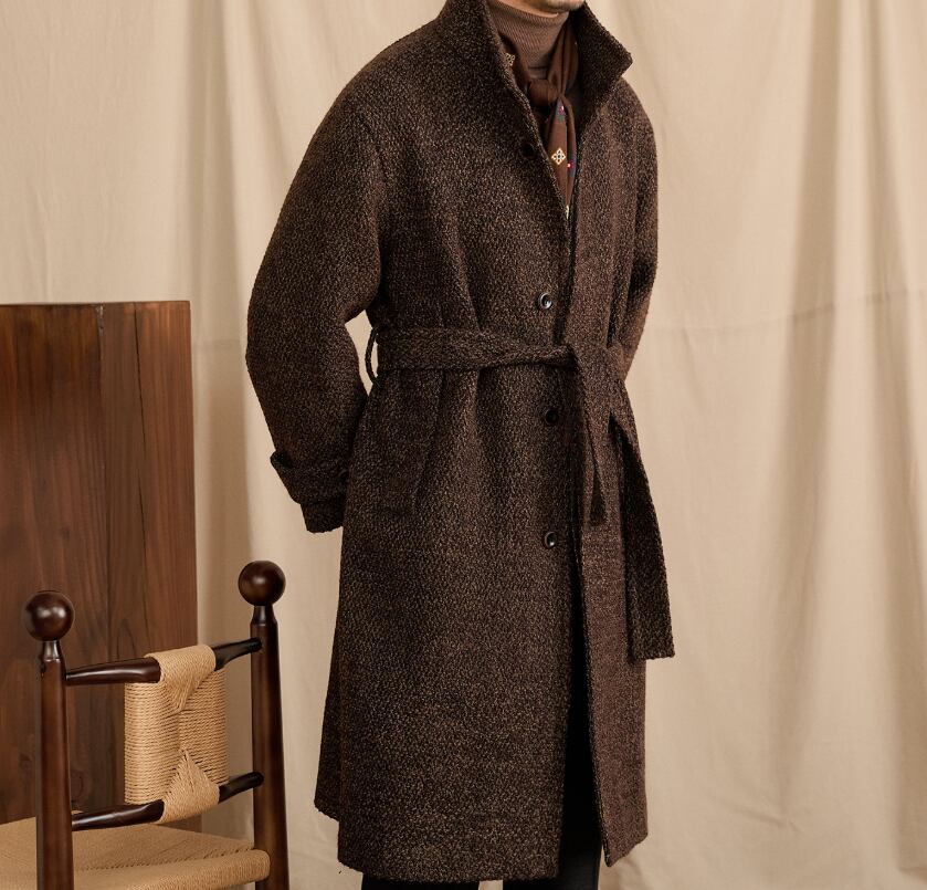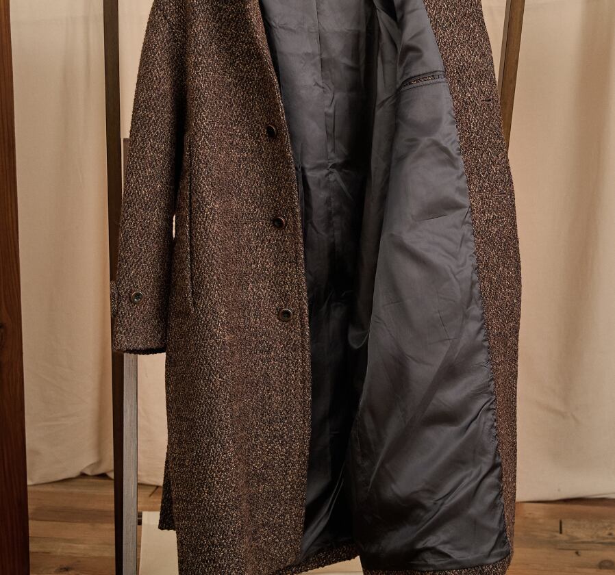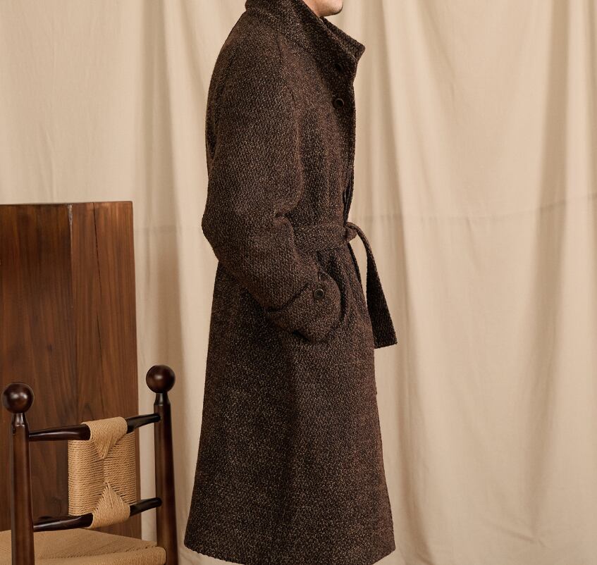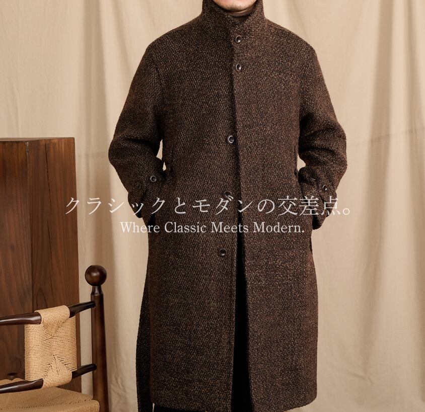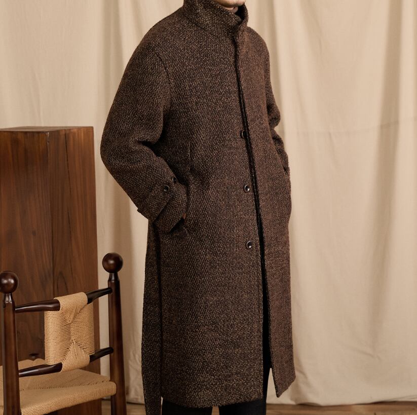 《70%ウール・650gヘビーウール》プレミアムヘリンボーンロングコート|ミニマルバルマカーン・深みブラウン・秋冬高級ウール混中長款