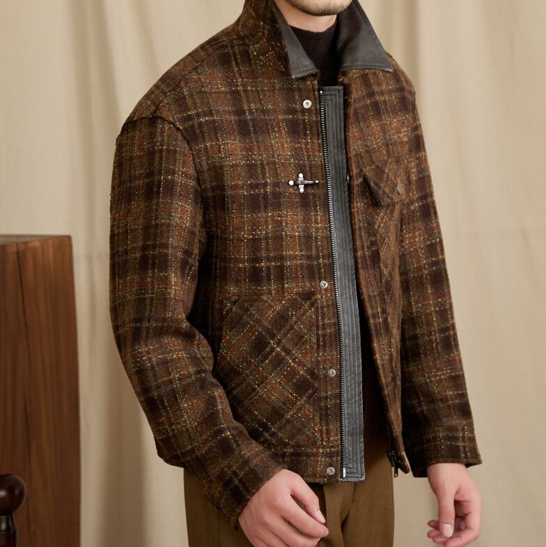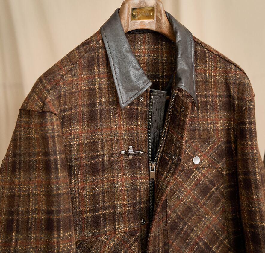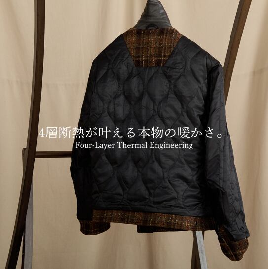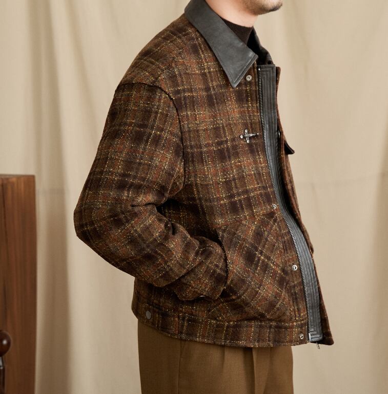 《4層断熱構造 × 44%ウール》プレミアム・チェックワークジャケット|高密度ウールブレンド・防風保温・ショート丈ミリタリーアウター