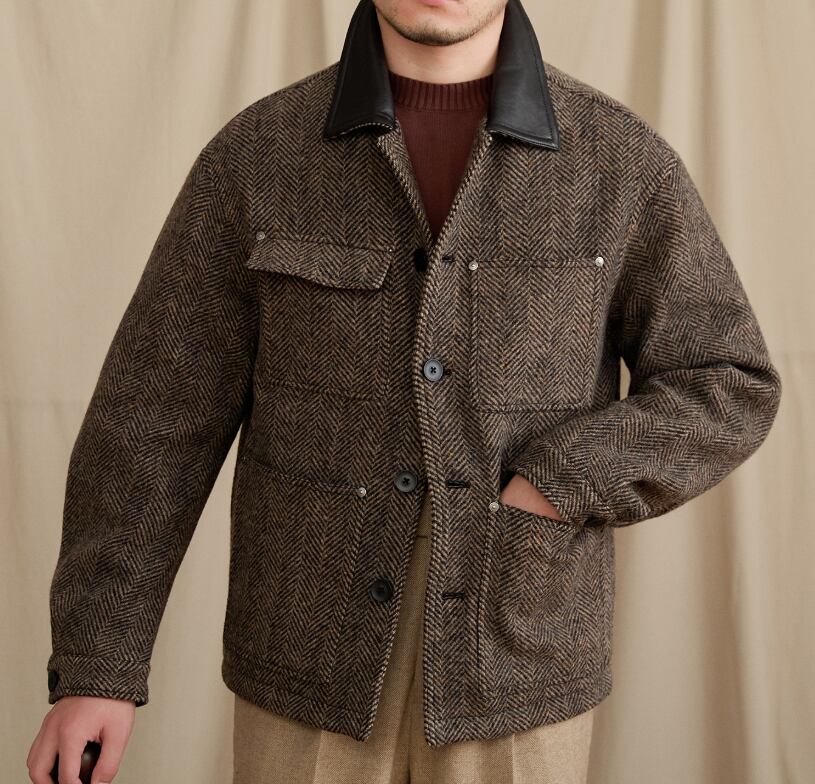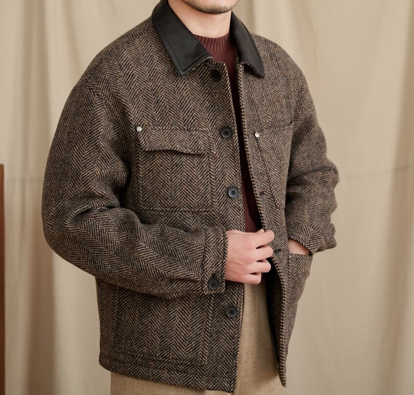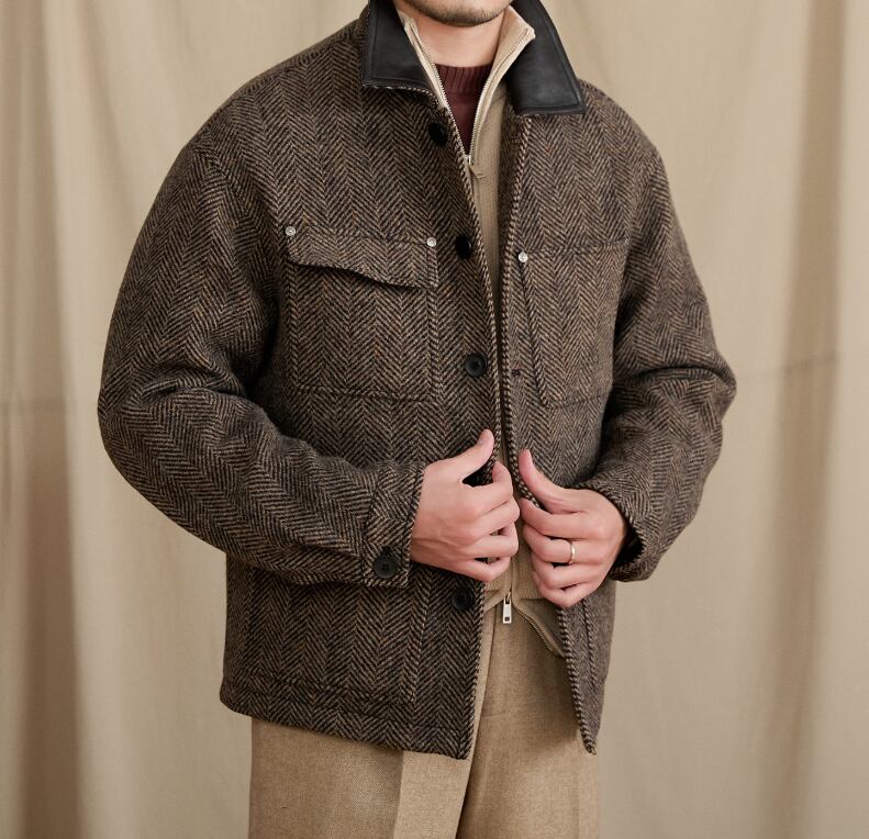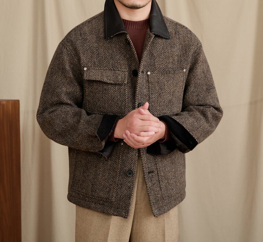 ・表地:100%羊毛(メリノウール、人字柄ツイード)