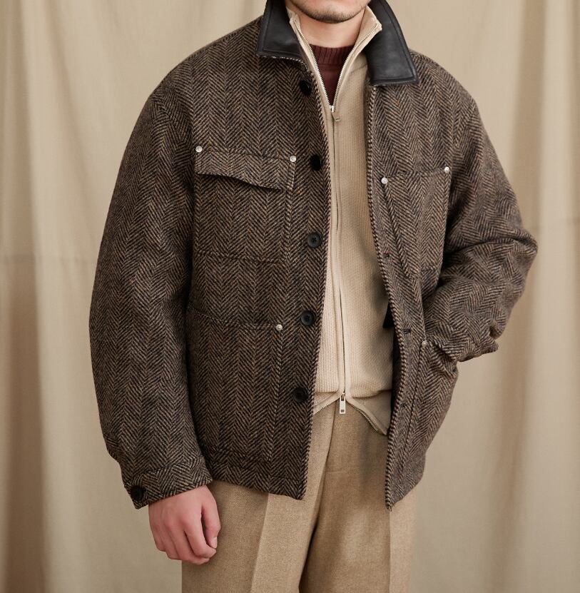 【Old Moneyムード漂うヘリンボーンブルゾン】