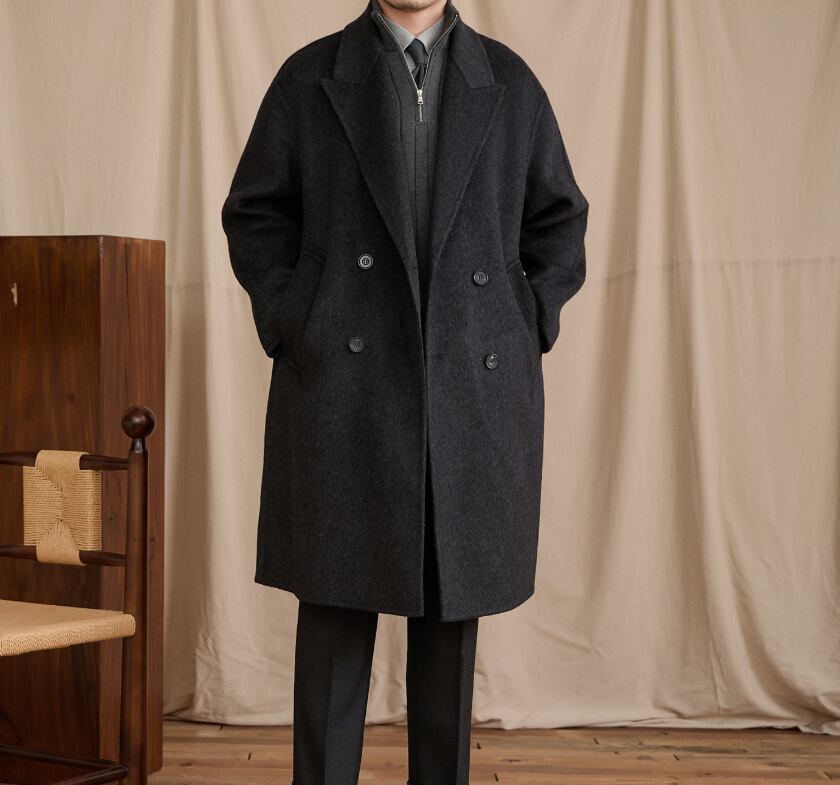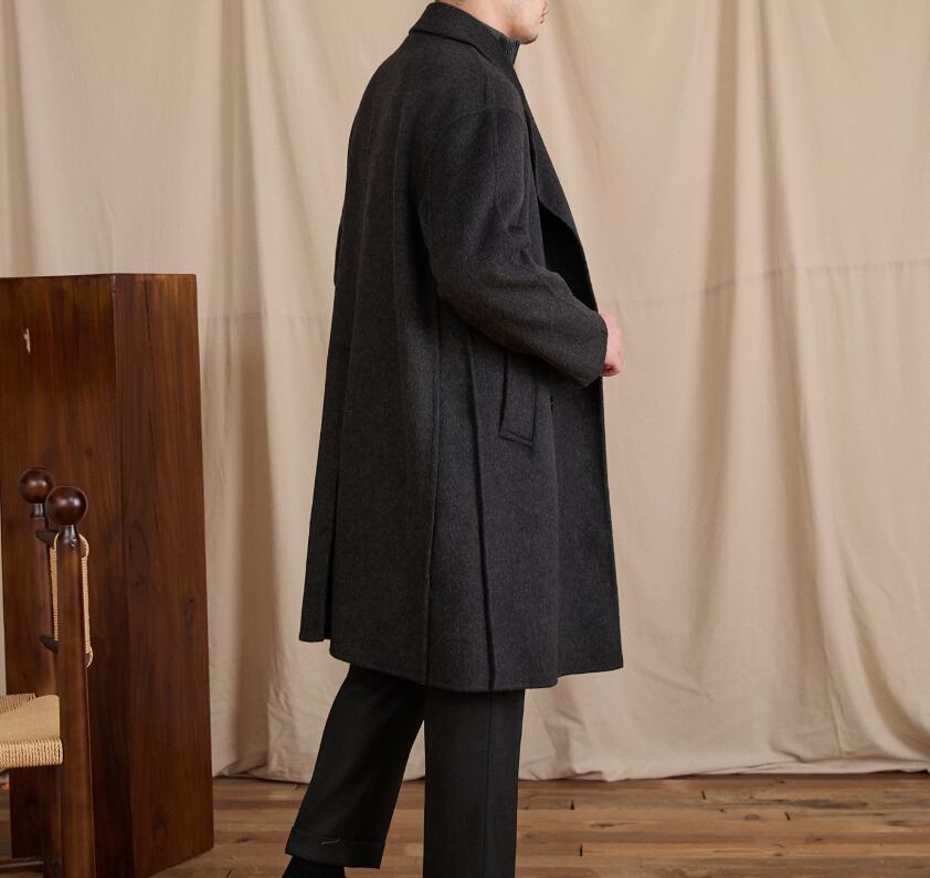 【DEZAIN】880gウール90%×キャメル10%|上質ダブルフェイスロングコート|秋冬高保温・立体構築シルエット