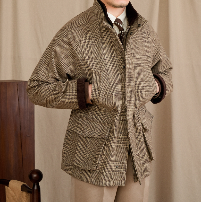 【ウール70%・700g】クラシックチェック ハンティングジャケット|メンズ秋冬アウター|防寒・英国調