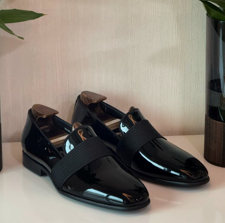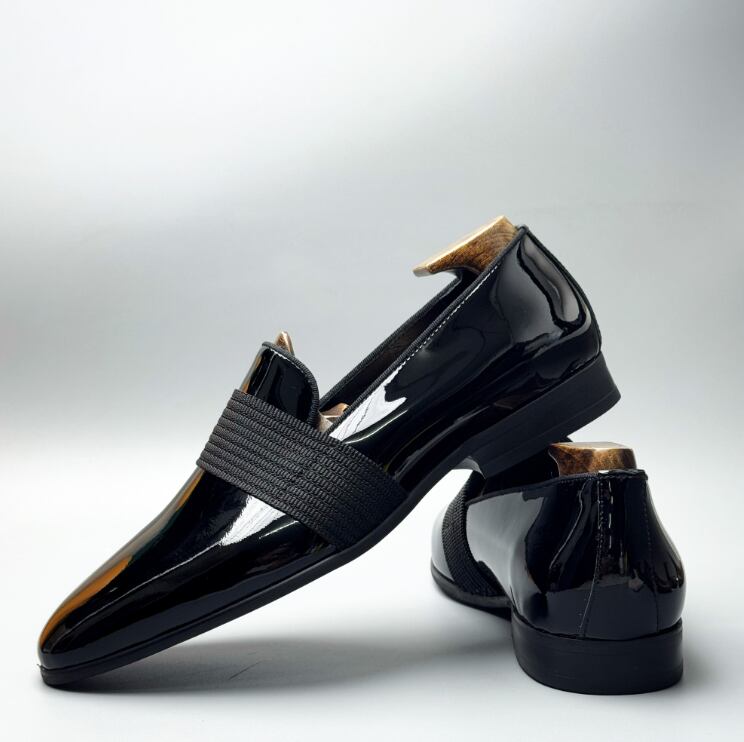 【本革・艶感】Swiscardin パテントレザー ローファー|英国風 レザードレスシューズ|メンズ 革靴 ブラック
