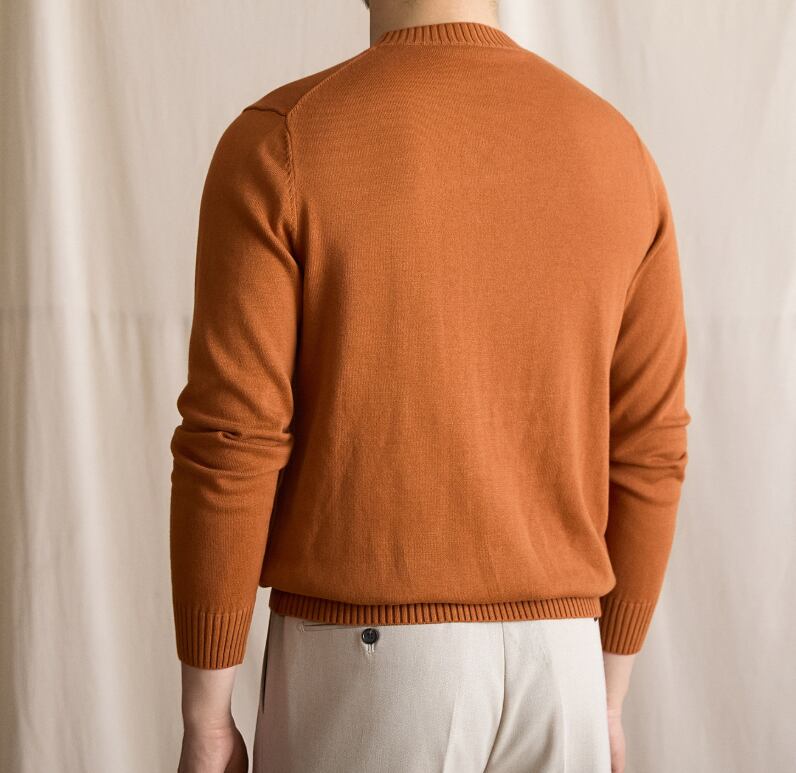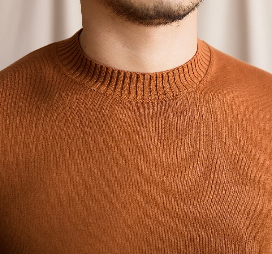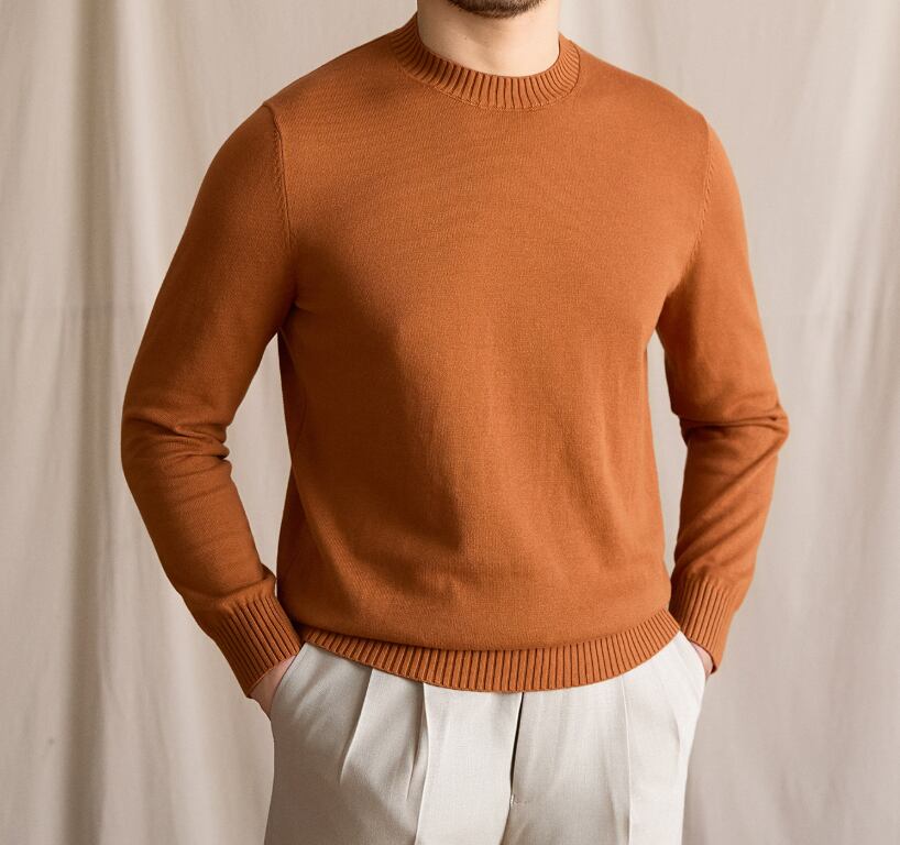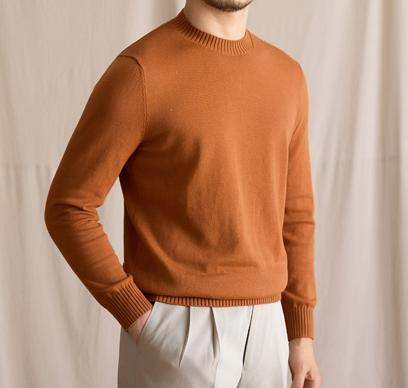 【至高の肌触り】綿100% コーマ綿 クルーネック ニット セーター メンズ 春服 無地 32番双糸 335g 厚手 スリムフィット きれいめ アンバーキャメル [全4色]