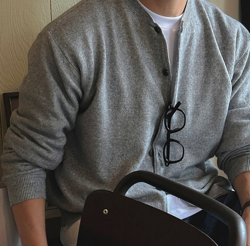 韓国ファッション メンズ / カーディガン メンズ / 韓国系コーデ / メンズニット / ルーズシルエット / ミニマルファッション / 韓国ストリート / 大人カジュアル / メンズ秋服 / 韓国セレクトショップ