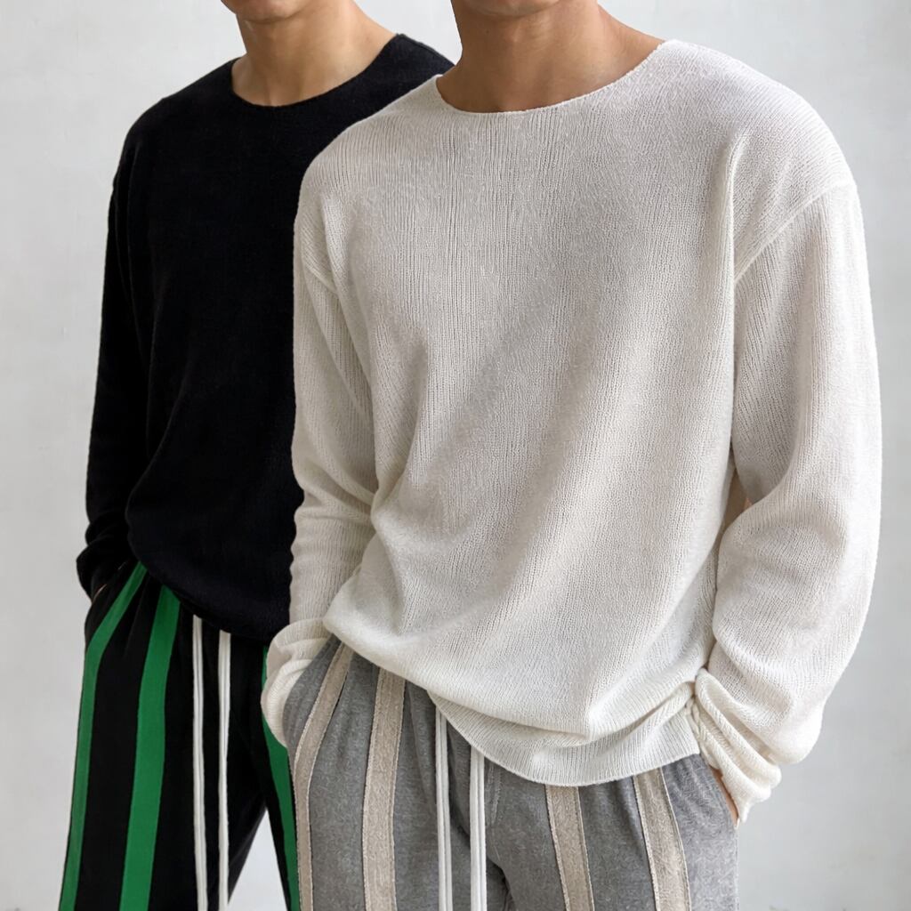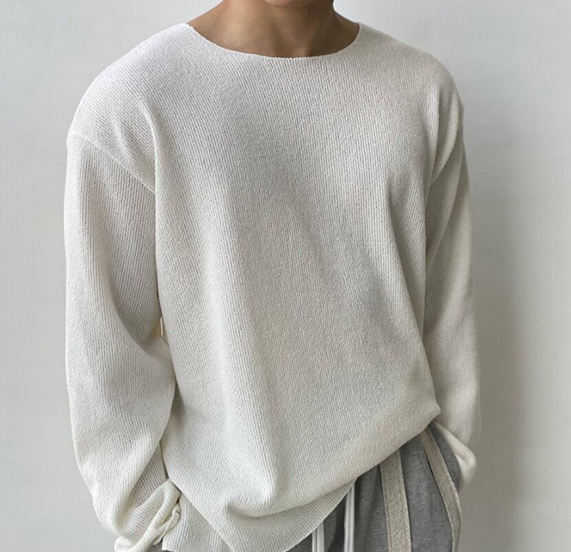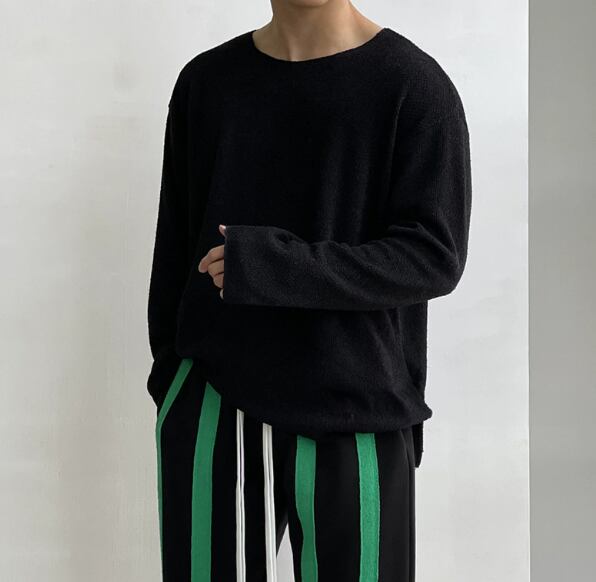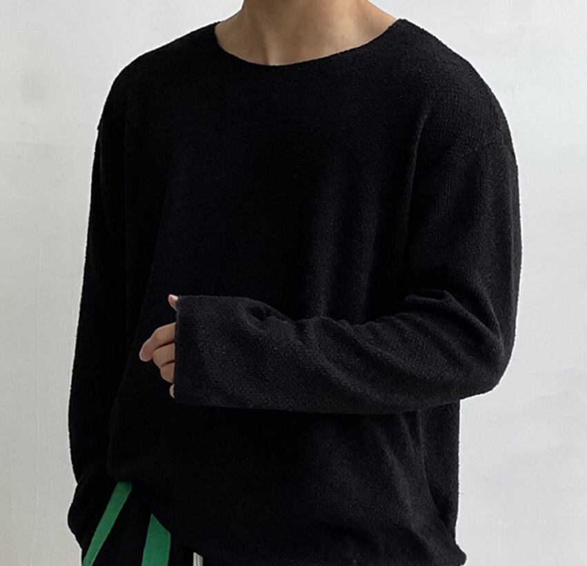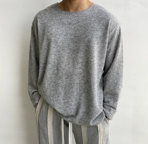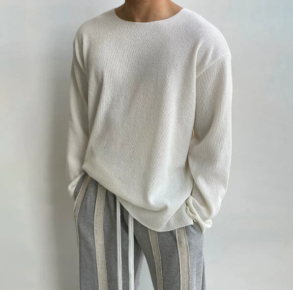 韓国系ルーズフィットニット メンズ / オーバーサイズ長袖トップス(クルーネック・春秋対応)