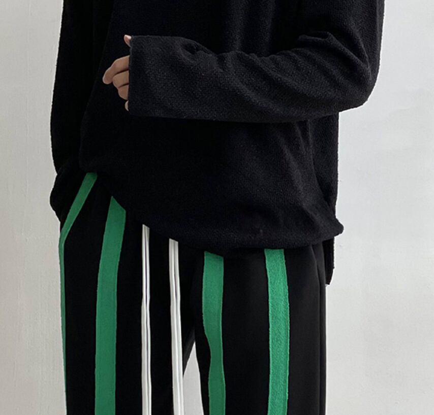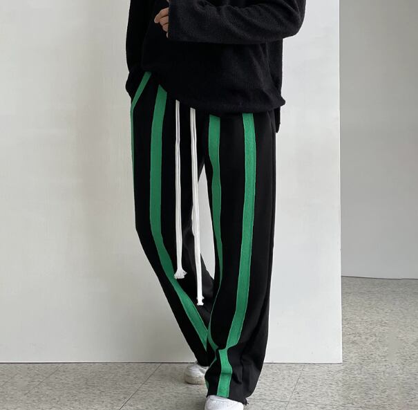 韓国系ルーズストライプパンツ メンズ / ワイドシルエットドローストリングパンツ(脚長・美シルエット)
