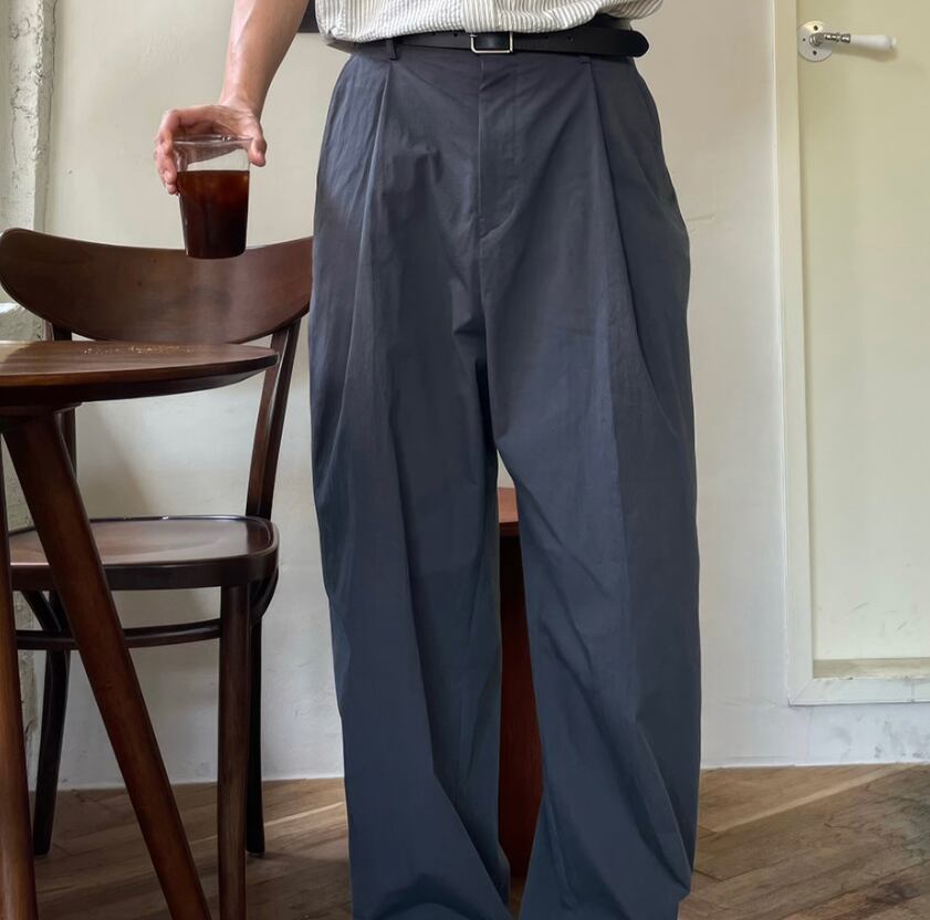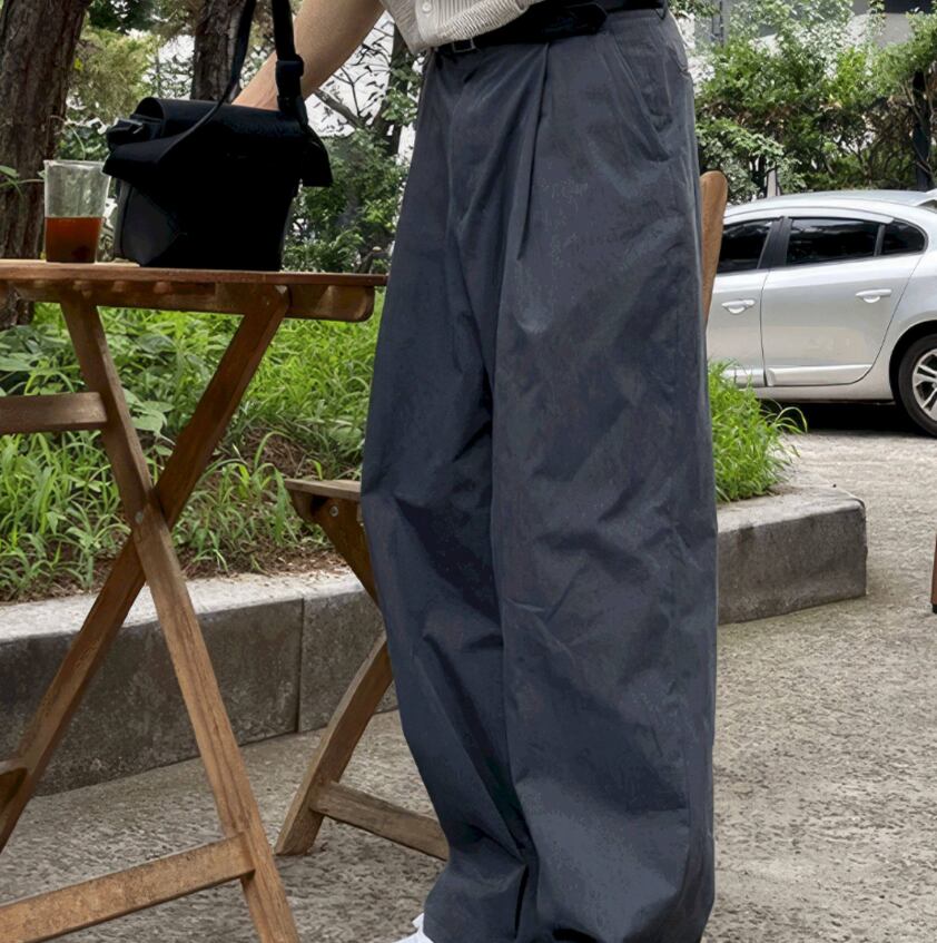 韓国系ミニマルワイドスラックスパンツ / cleanfit ルーズシルエット ストレートパンツ