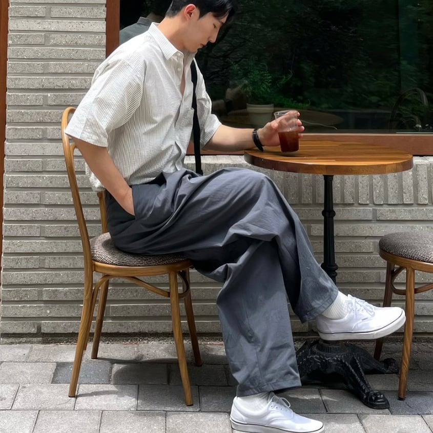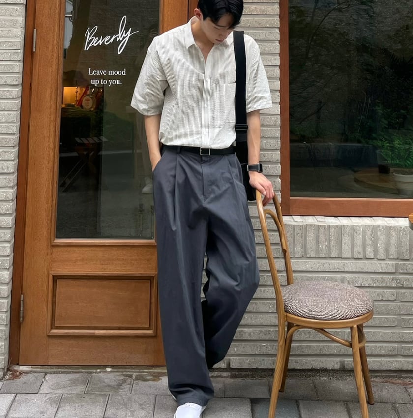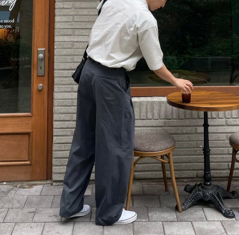 韓国ファッション メンズ / ワイドパンツ メンズ / スラックス メンズ / ルーズパンツ / cleanfit / 韓国ストリート / メンズボトムス / 韓国系コーデ / モード系パンツ / ストレートパンツ