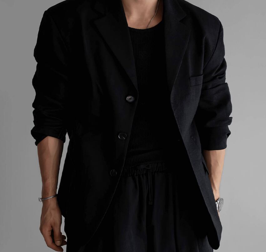 メンズ ジャケット / テーラードジャケット / 韓国ファッション / ルーズシルエット / 春夏ジャケット / メンズコーデ / ベージュジャケット / ブラックジャケット / 韓国メンズ / 軽量ジャケット / リネンジャケット / 羽織り メンズ