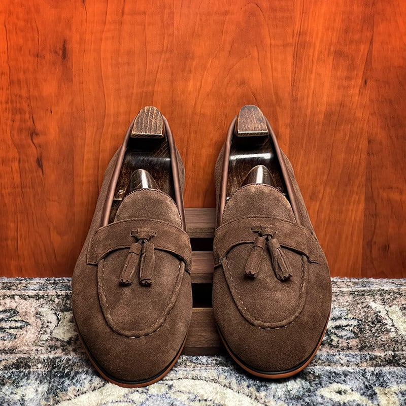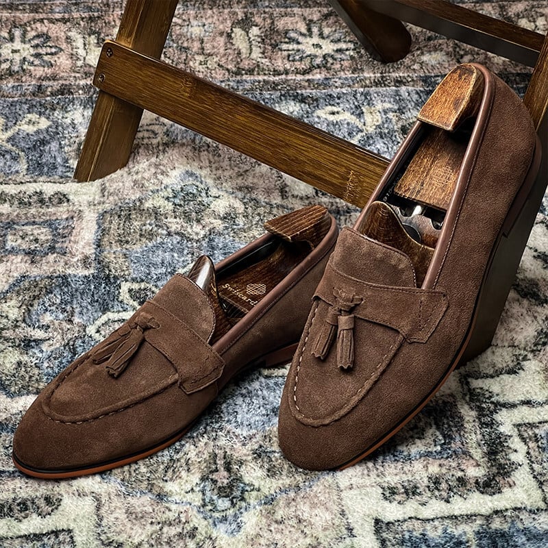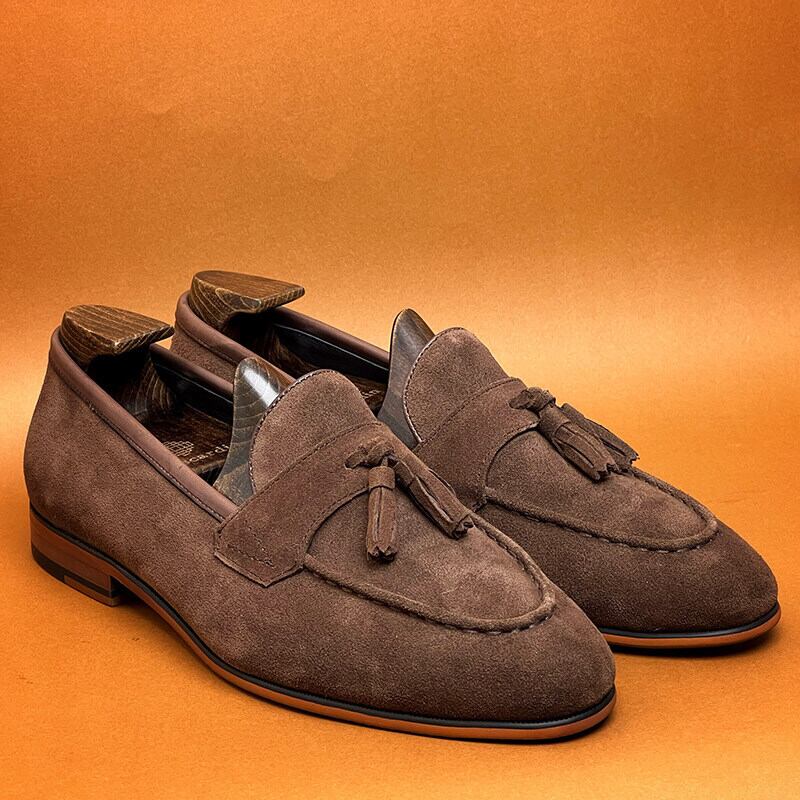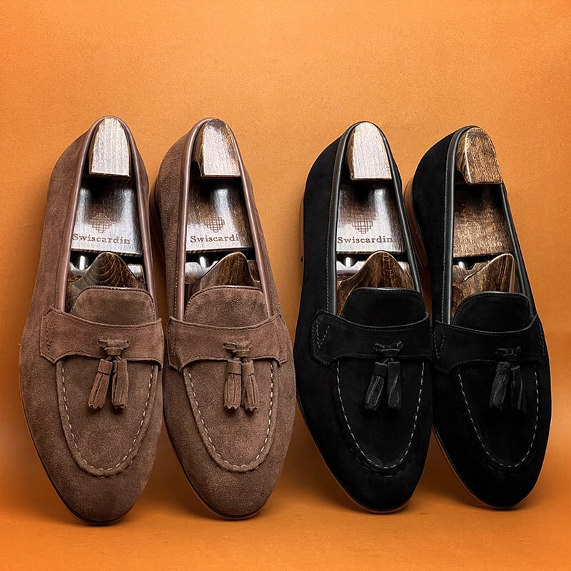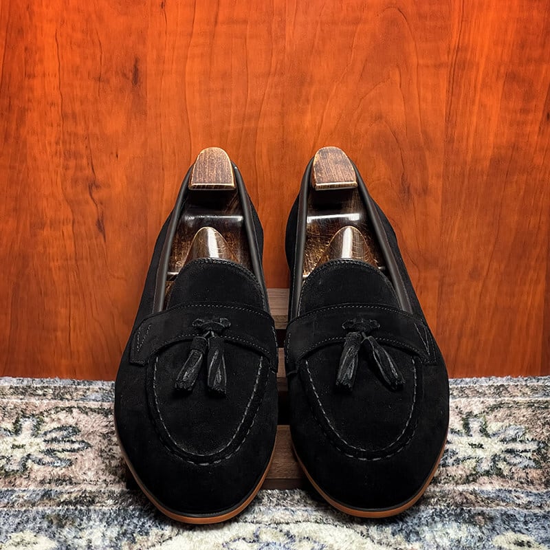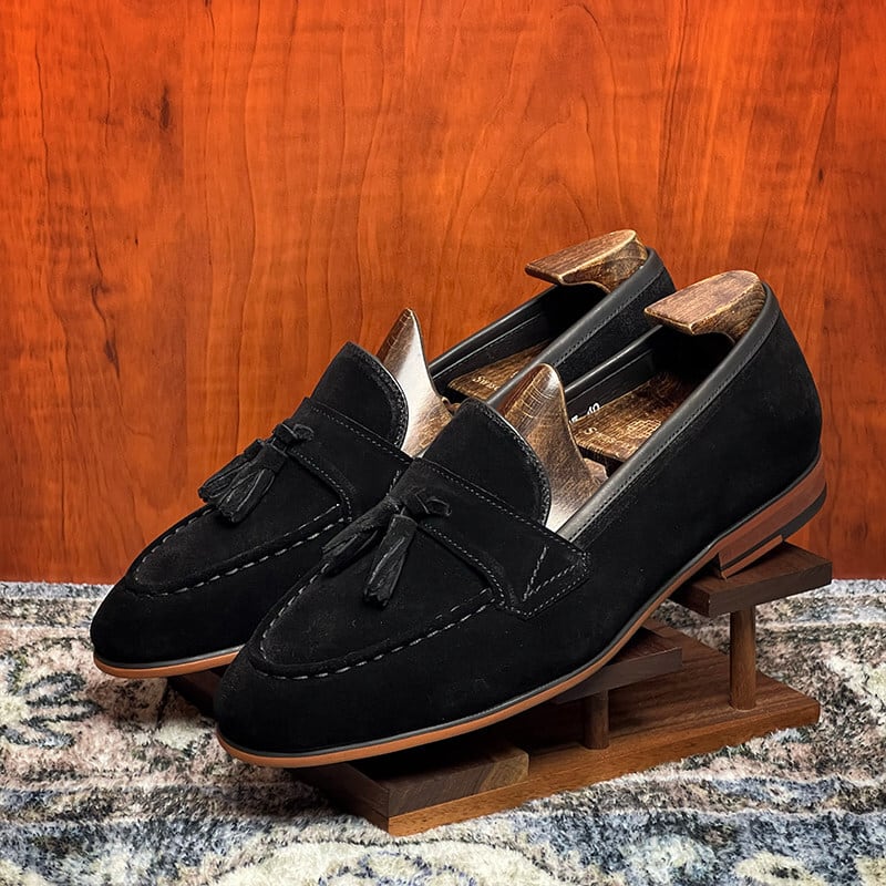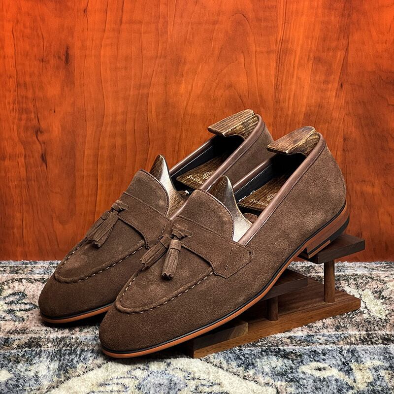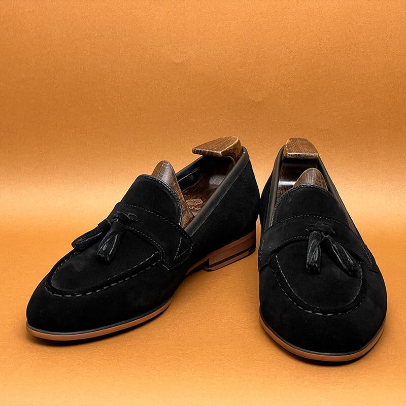 スエードタッセルローファー|本革・英国風クラシック(ブラック/ブラウン)
