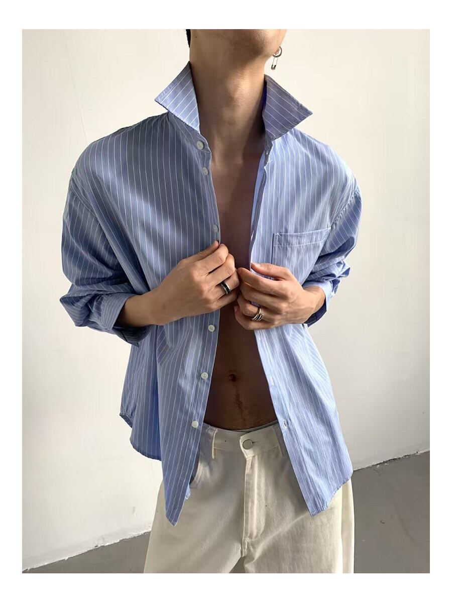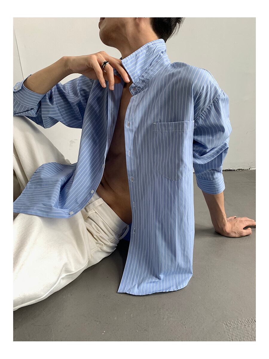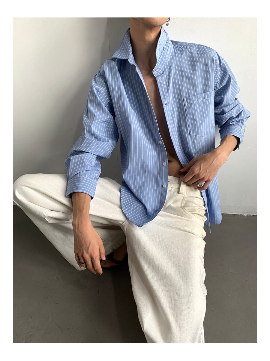 ストライプシャツ メンズ / 韓国ファッション / メンズシャツ / 春服 メンズ / 夏服 メンズ / オーバーサイズシャツ / モード系 / カジュアルシャツ / セレクトショップ / ユニセックス