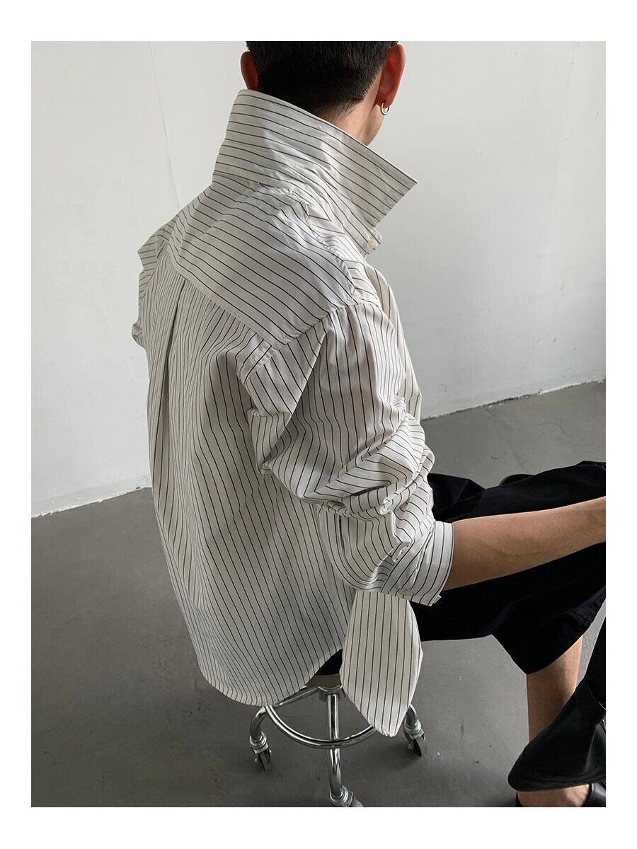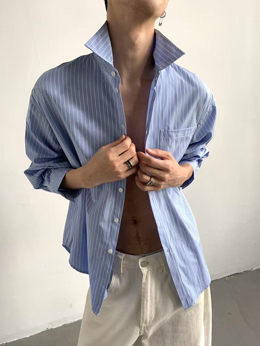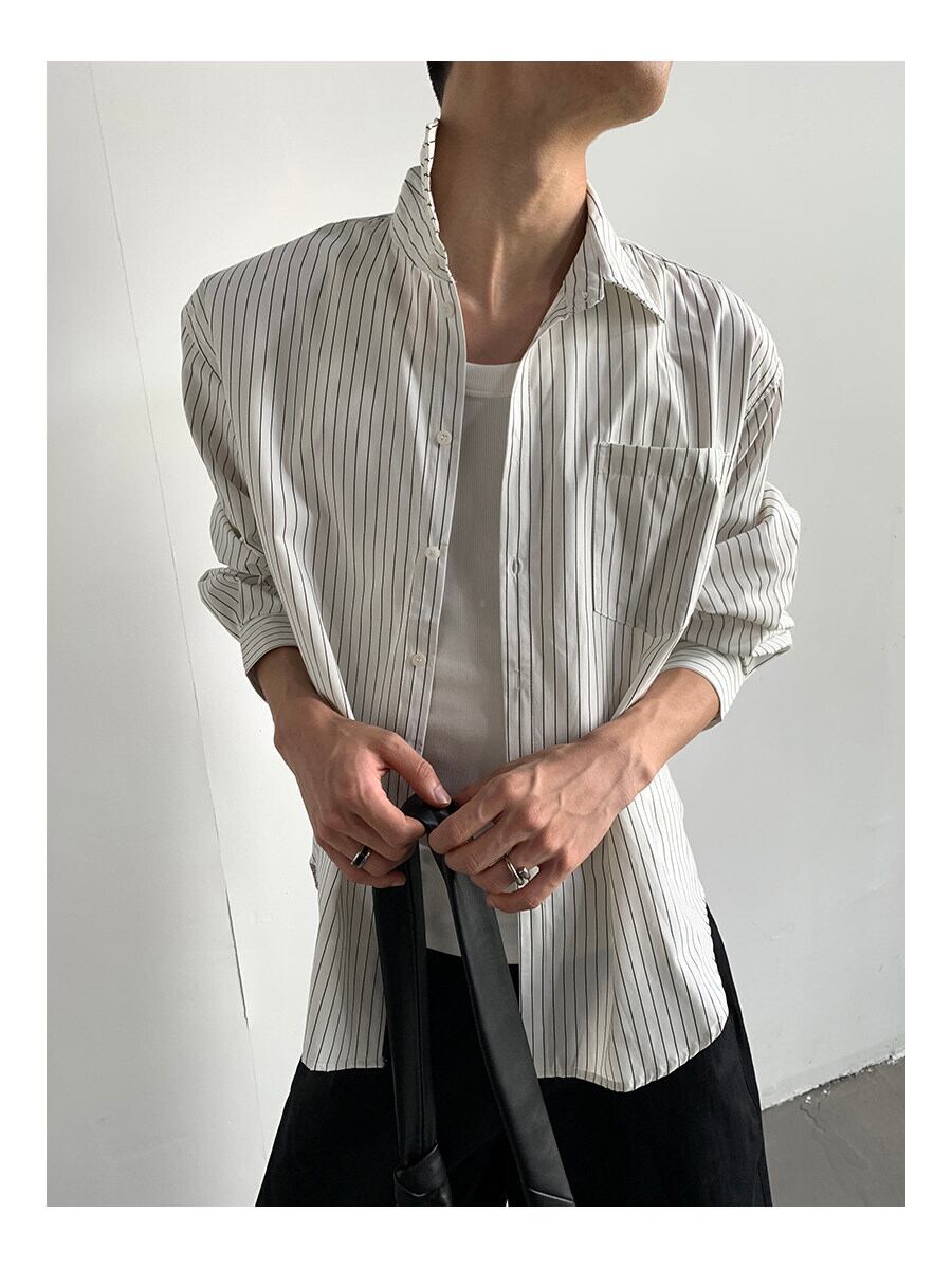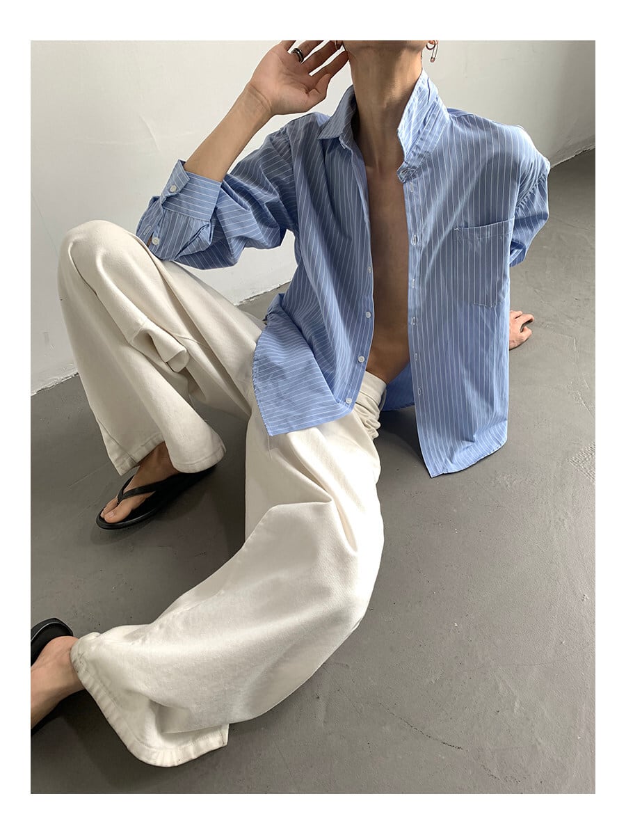 ストライプシャツ メンズ / 韓国ファッション / メンズシャツ / 春服 メンズ / 夏服 メンズ / オーバーサイズシャツ / モード系 / カジュアルシャツ / セレクトショップ / ユニセックス