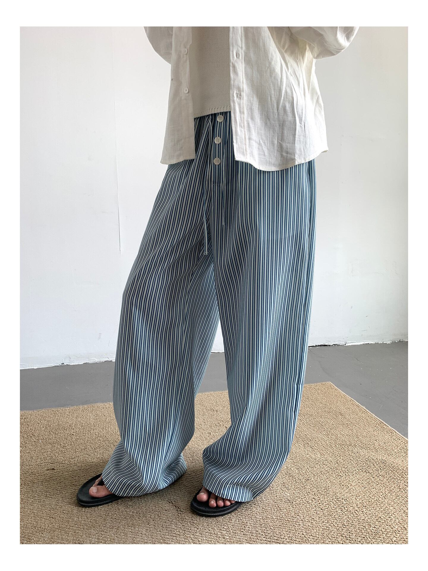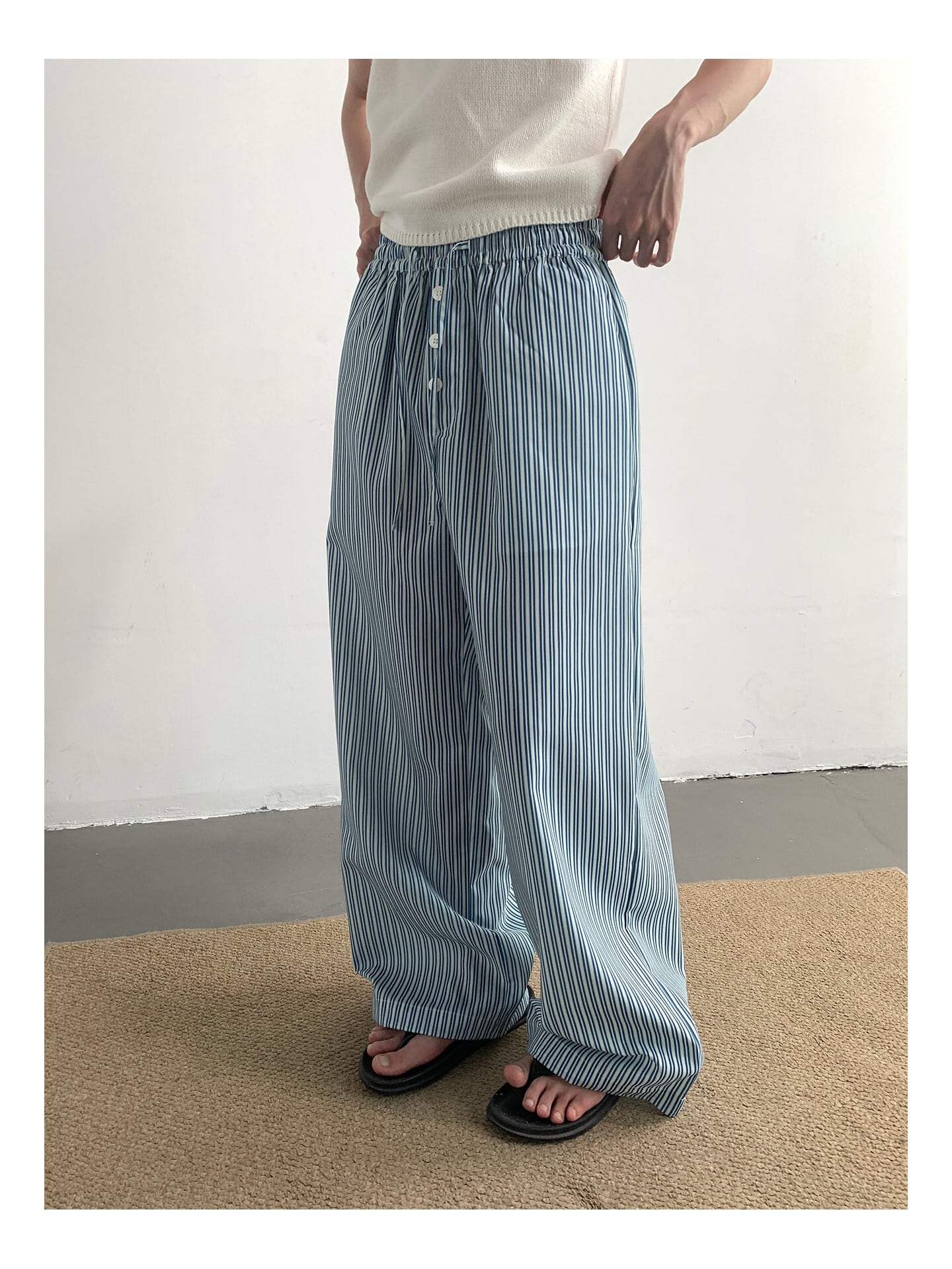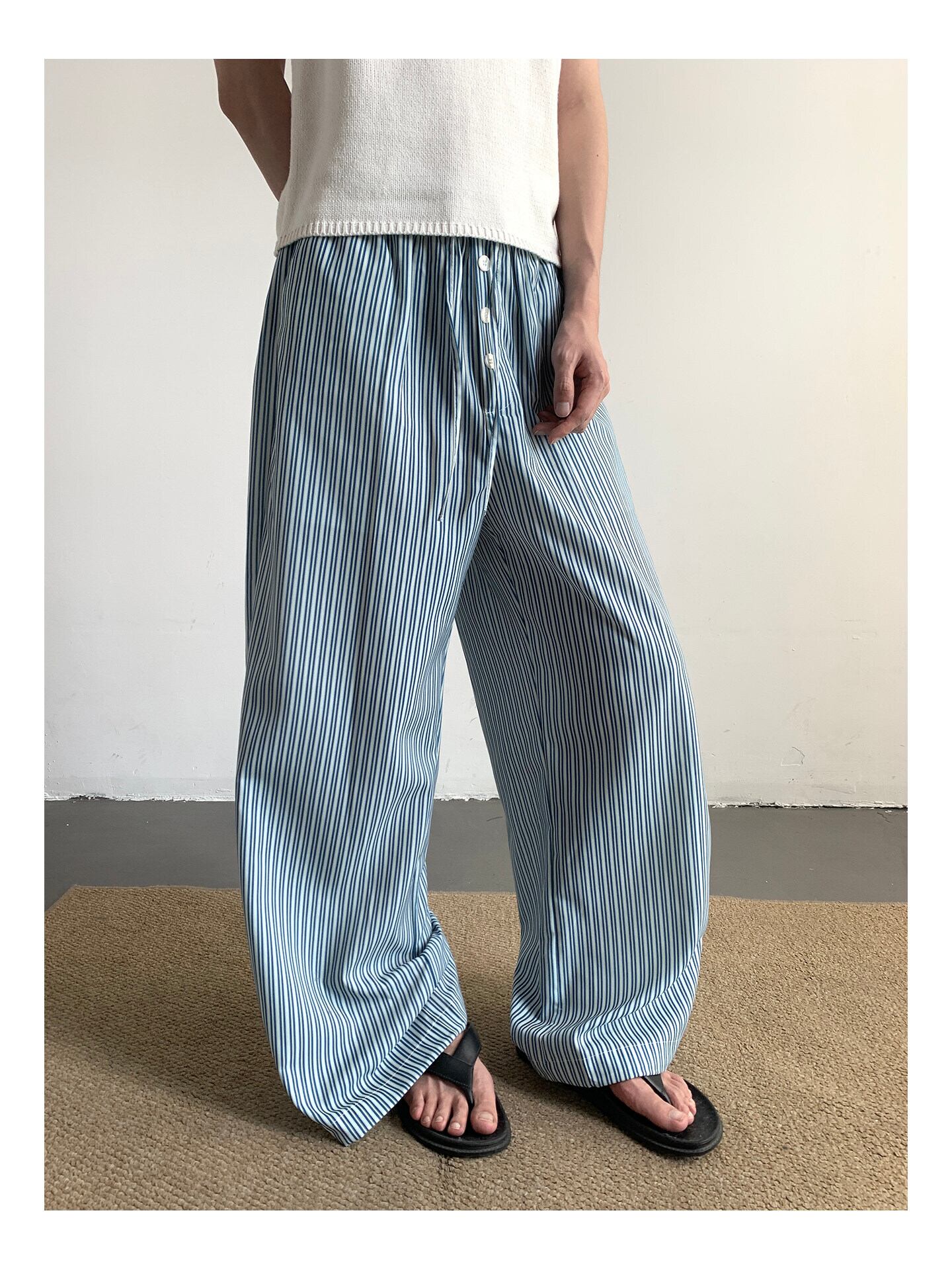 ワイドパンツ メンズ / ストライプパンツ / 韓国ファッション / メンズパンツ / 春服 メンズ / 夏服 メンズ / イージーパンツ / カジュアルパンツ / セレクトショップ / メンズコーデ