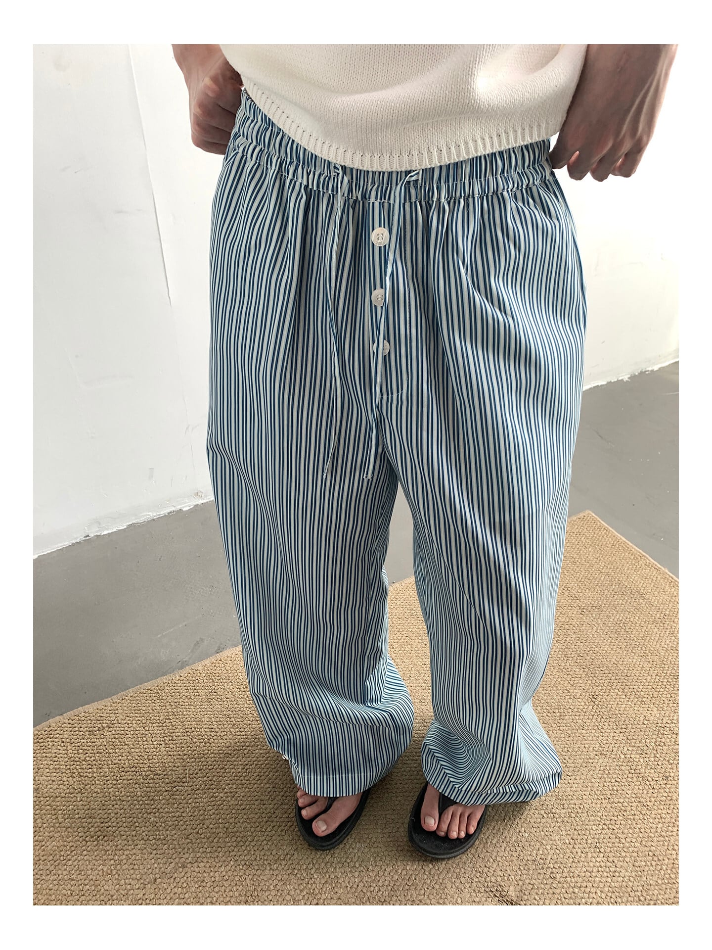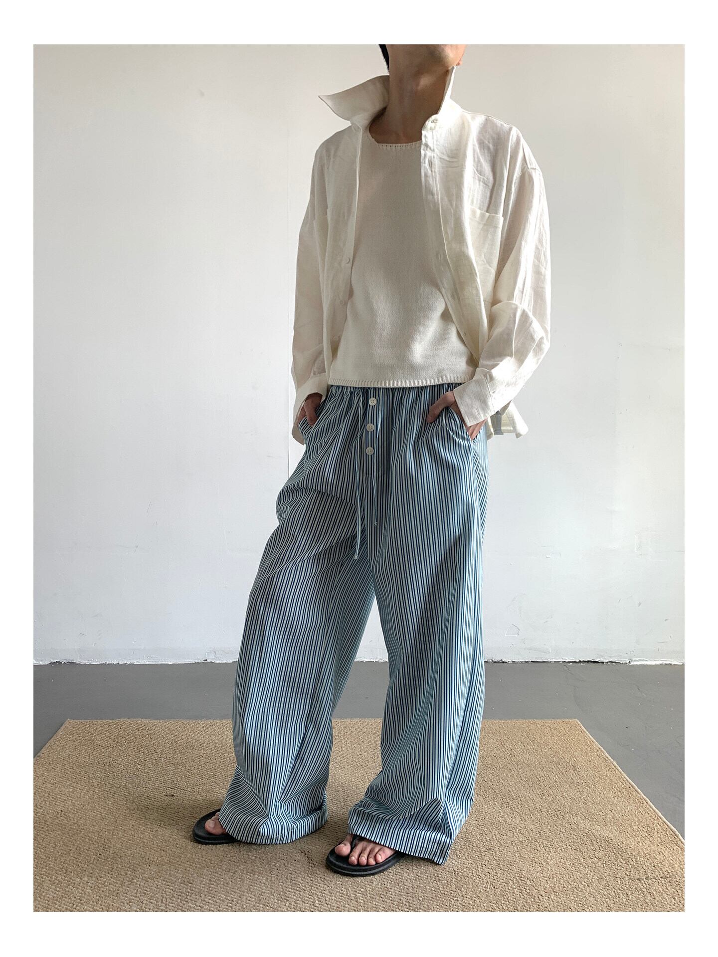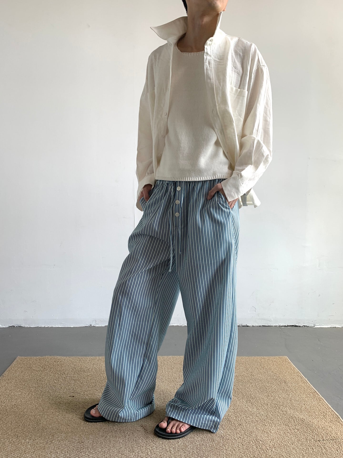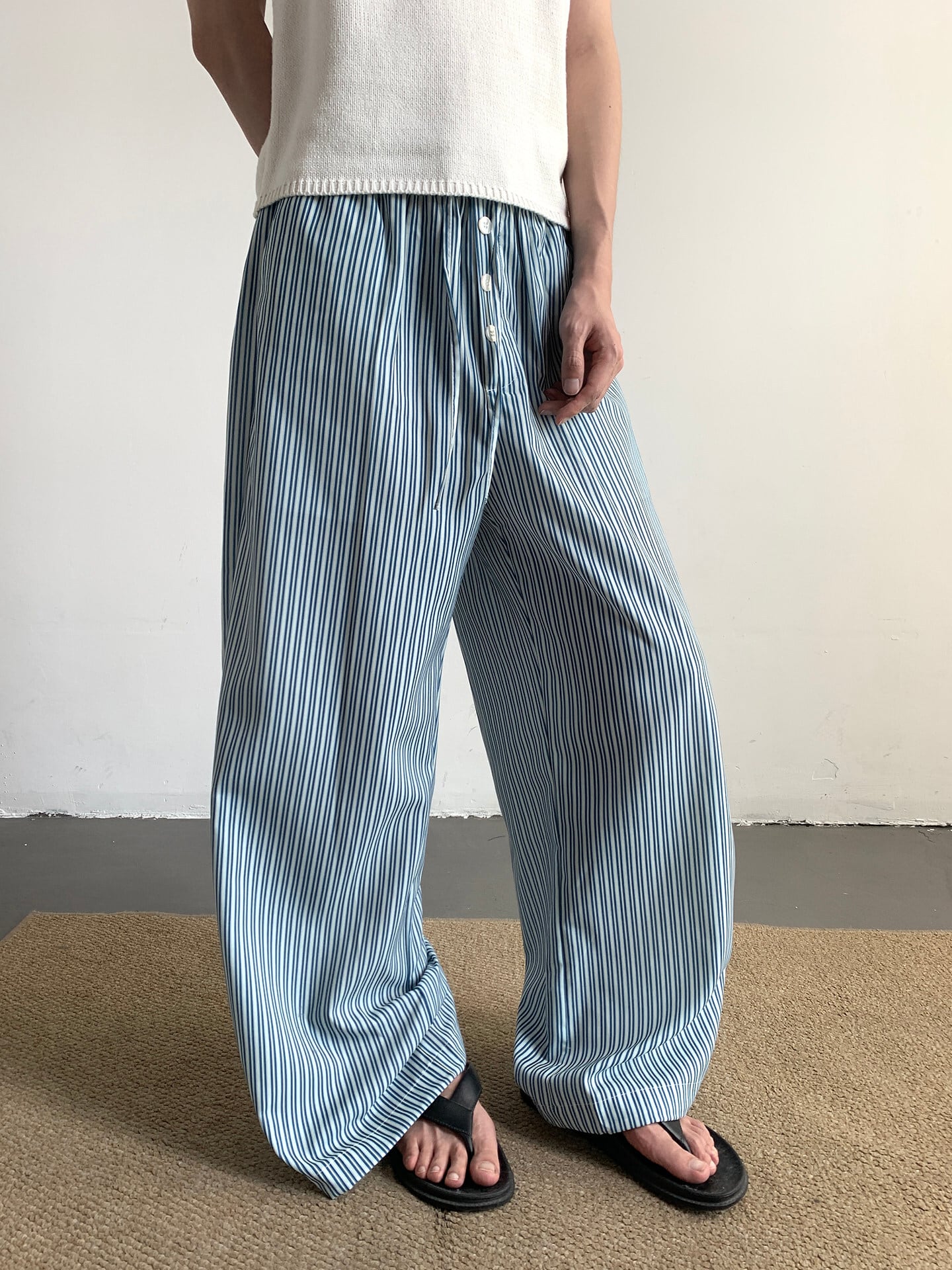 ワイドパンツ メンズ / ストライプパンツ / 韓国ファッション / メンズパンツ / 春服 メンズ / 夏服 メンズ / イージーパンツ / カジュアルパンツ / セレクトショップ / メンズコーデ