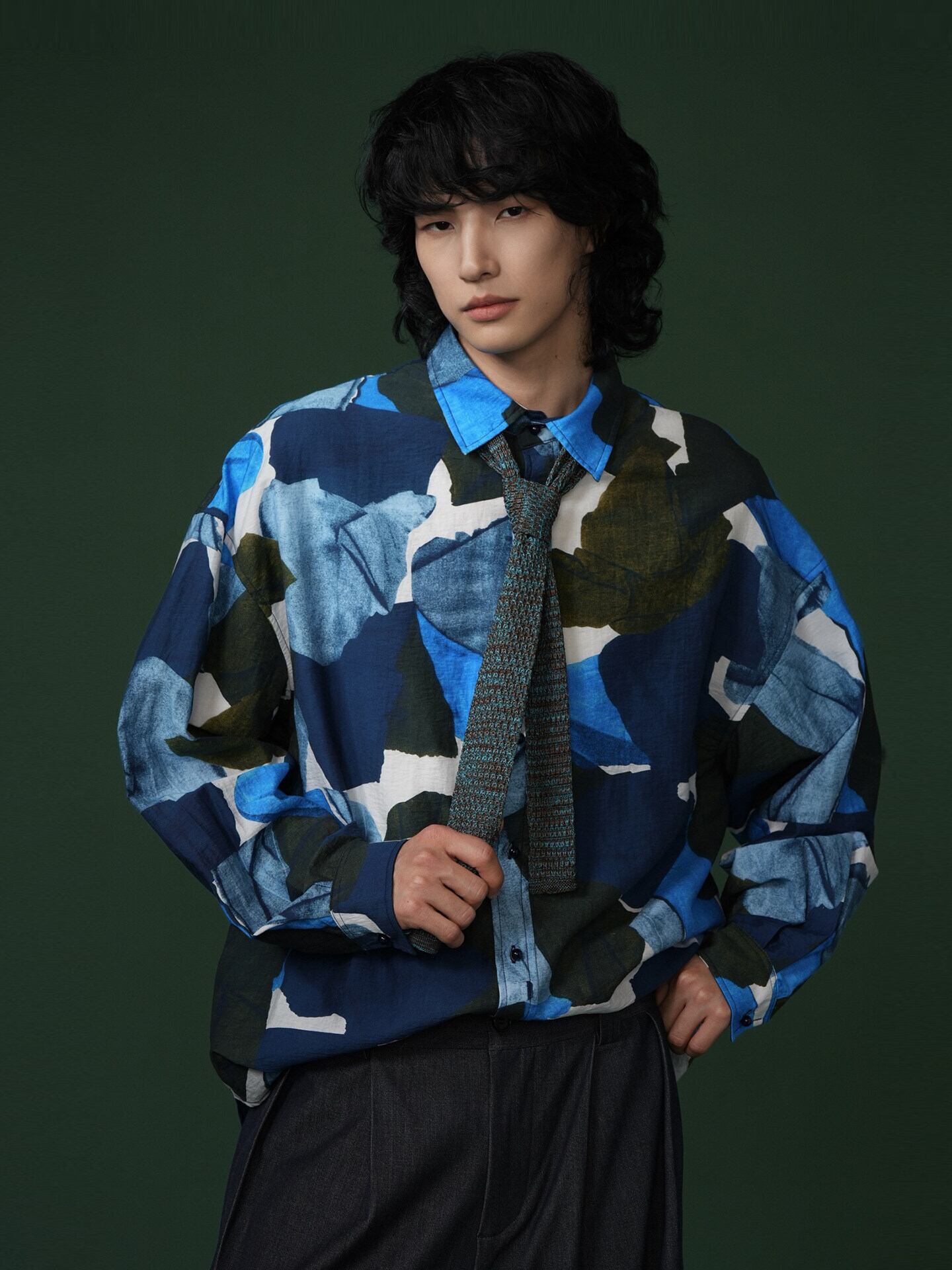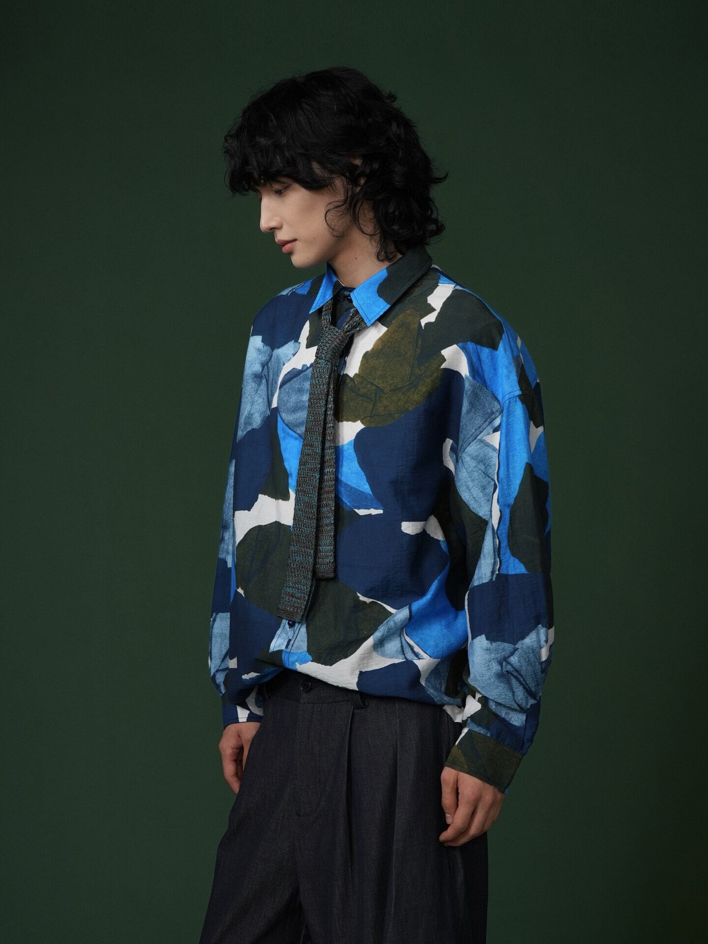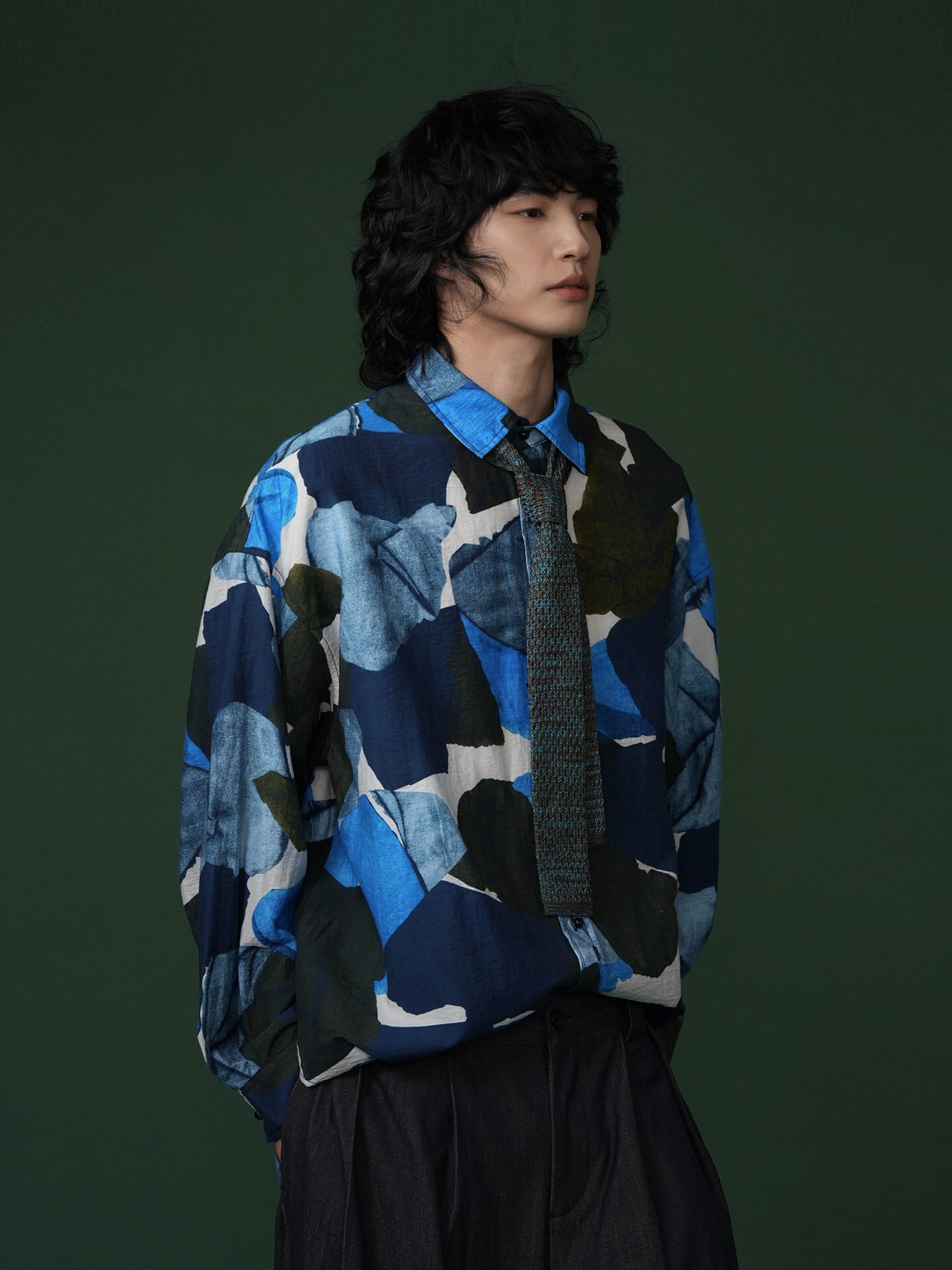 アートパターンシャツ メンズ レディース 長袖 ビッグシルエット 春 薄手 総柄 韓国ファッション ユニセックス DEZAIN
